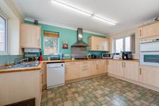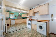 Fitted with a range of base cupboard, drawer and wall units, incorporating one and a half bowl sink unit with mixer tap over. Space for dishwasher. Built in oven with gas hob and extractor over. Additional units incorporating a Butler style sink with mixer tap over. Appliance spaces for washing machine and tumble drier. Space for fridge/freezer. Two radiators. Built in pantry. Window to the front and rear aspects and half glazed door leading to the rear garden.