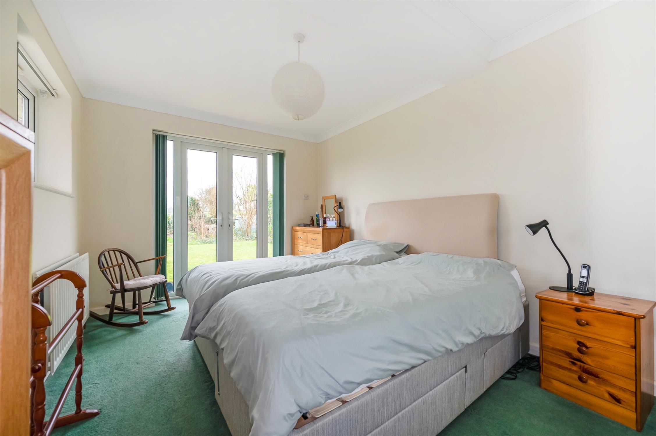 Double aspect with double opening doors overlooking and leading to the rear garden and window to the side. Fitted wardrobes with mirror doors. Radiator.