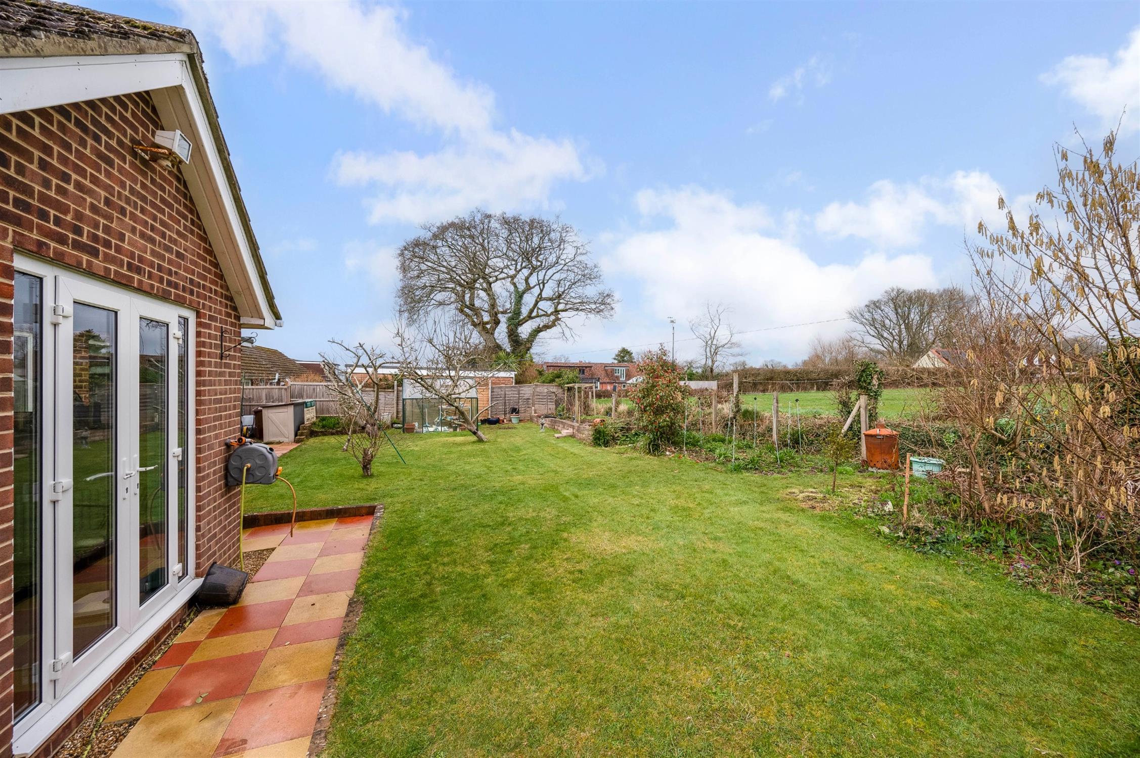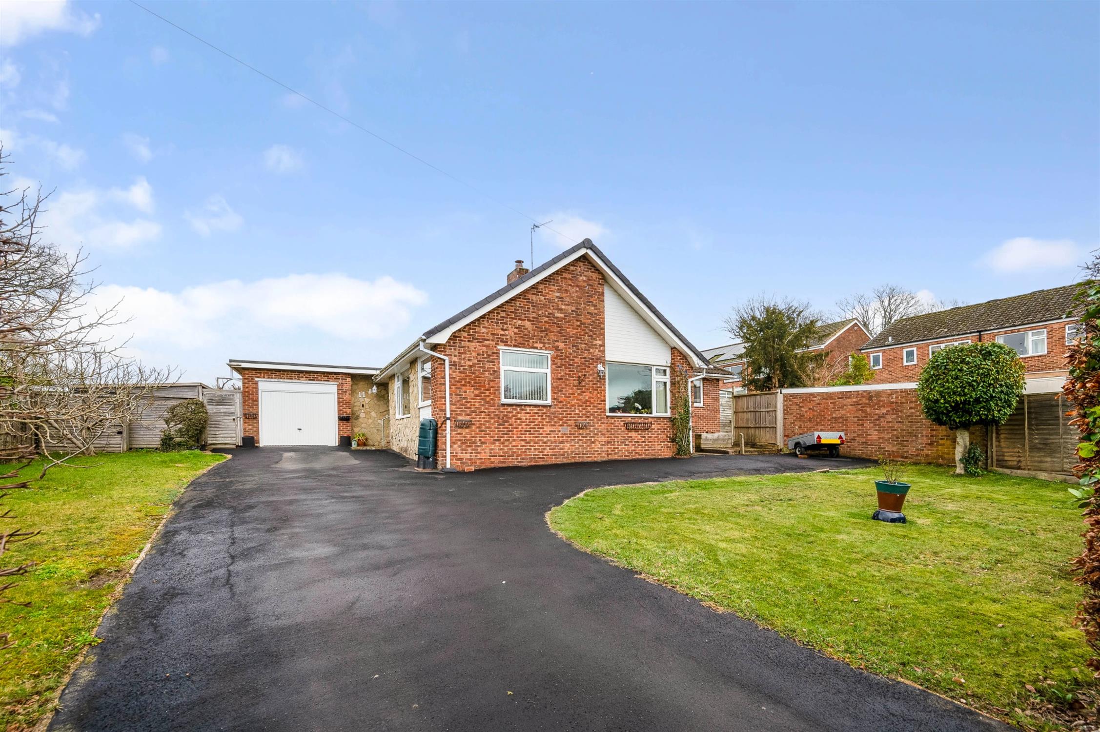 Attractive detached bungalow, tucked away in a sought-after residential cul-de-sac on the outskirts of Bishop’s Waltham. The property enjoys an impressive open rear view across the neighbouring field forming part of the South Downs National Park. The spacious and well balanced accommodation is complemented by generous driveway parking and a garage. Internally, the home benefits from gas heating, double glazing and in brief comprises: entrance hall, sitting room, dining room, and a spacious kitchen/breakfast room. There are three bedrooms, including a main bedroom with en-suite, together with a family bathroom.