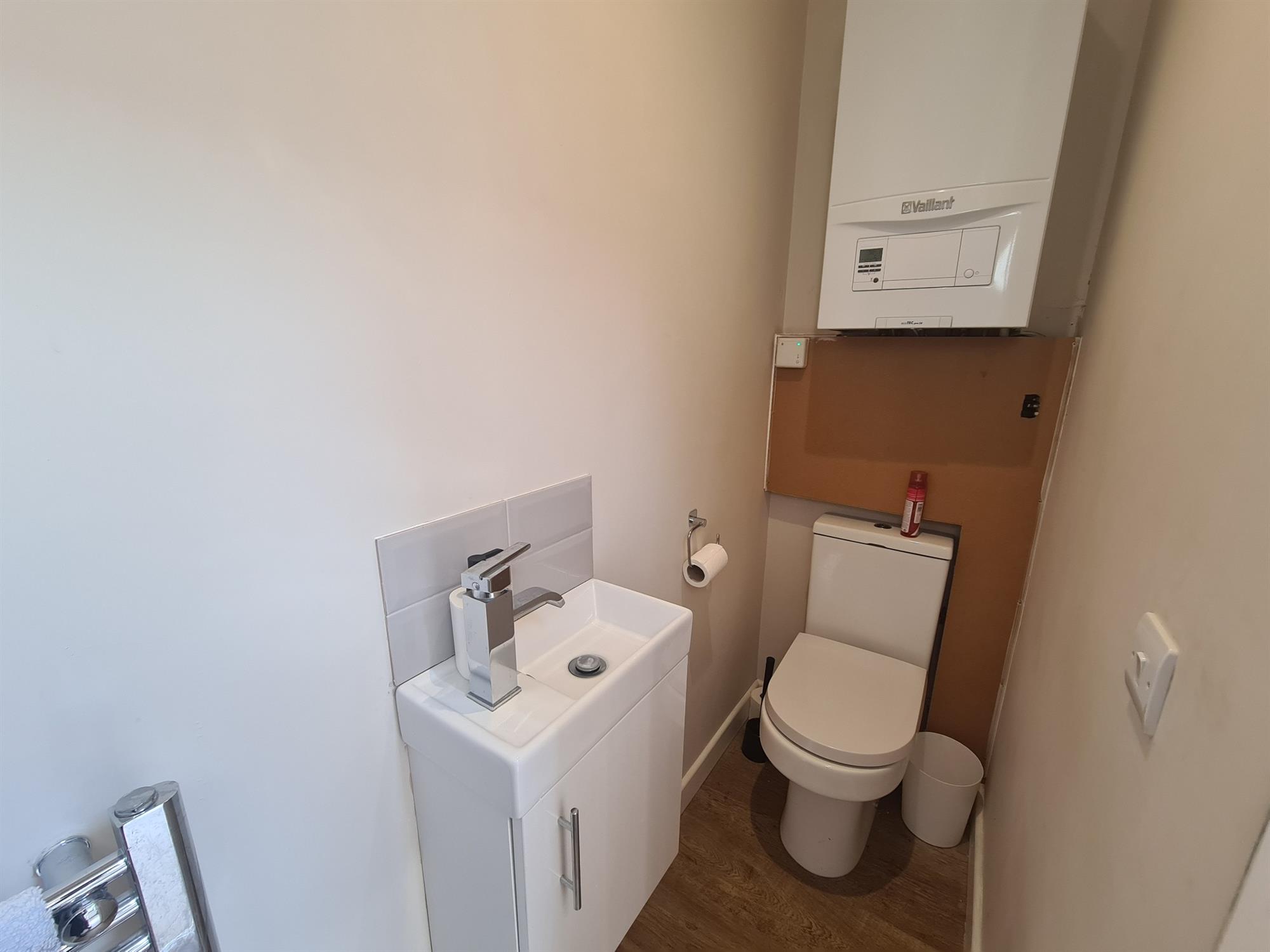 There are double patio doors that lead to the garden and door that leads to the downstairs WC.
