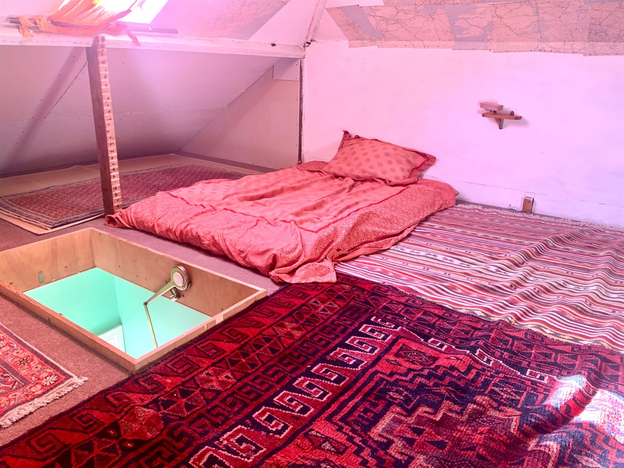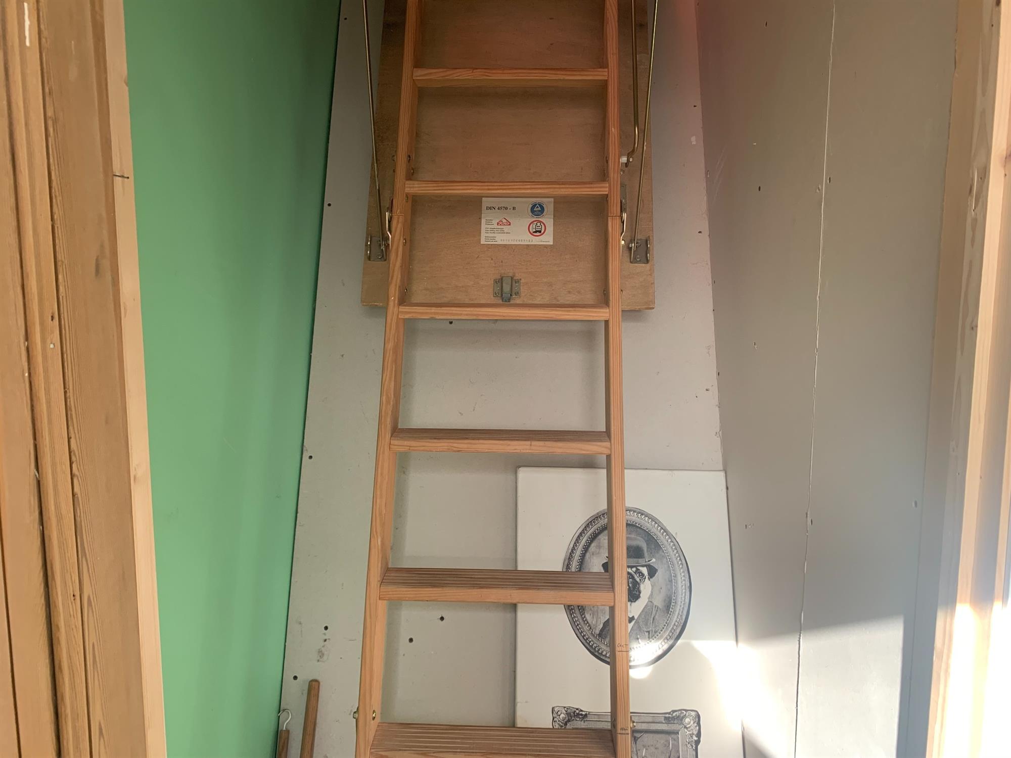 ATTIC ROOM: Ladder from landing leads to attic room with Velux window.