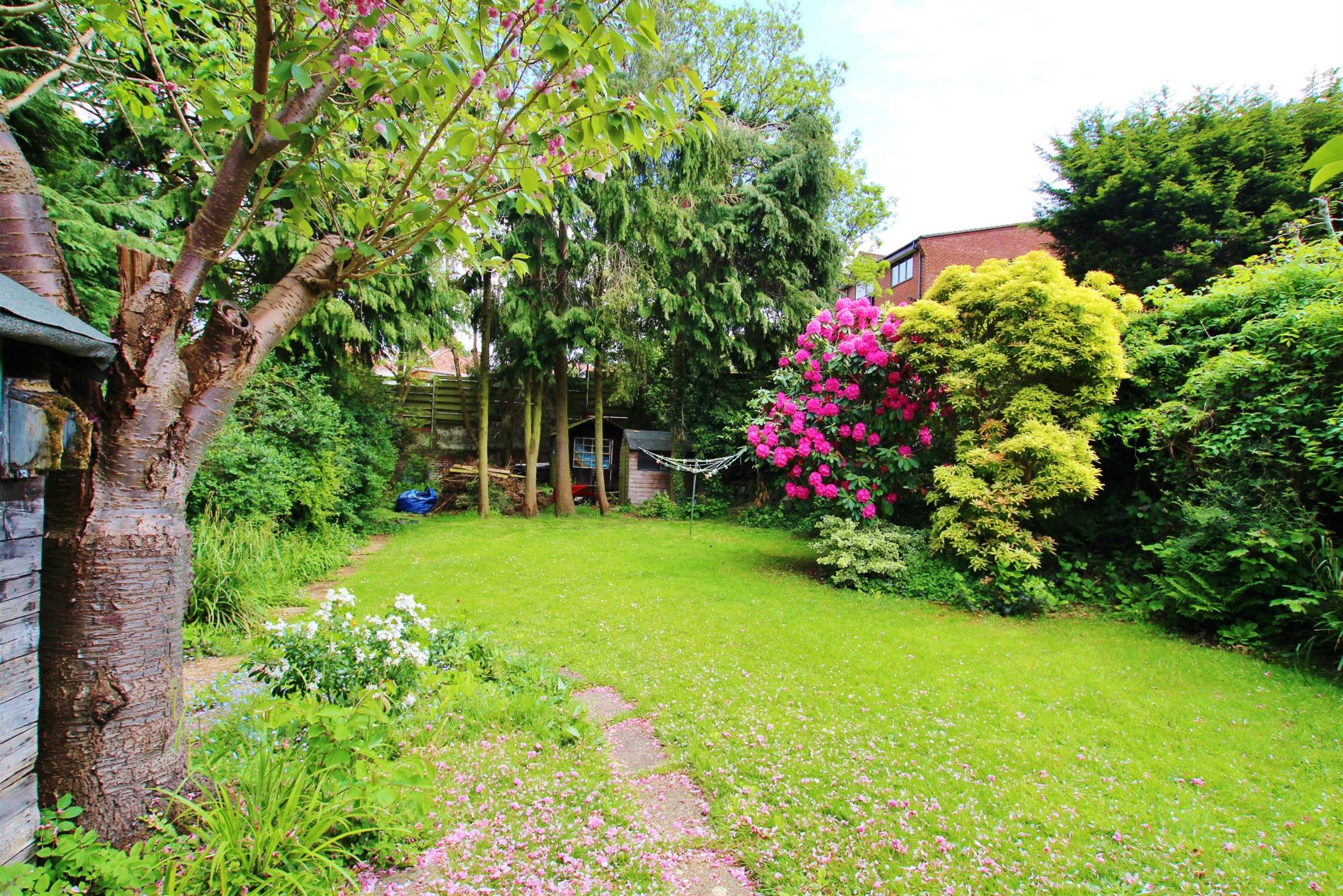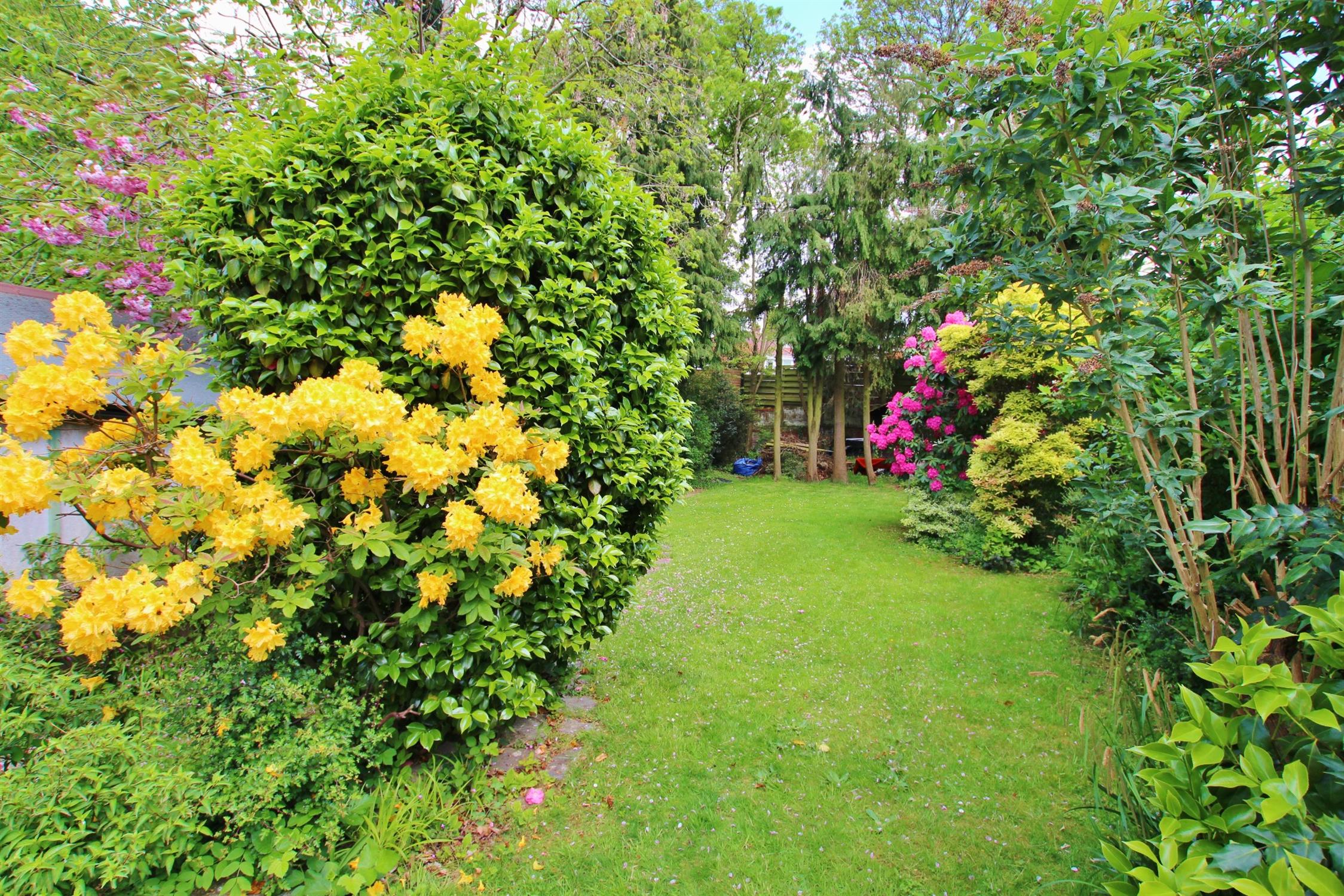 The front garden is a neatly laid lawned area with mature hedging to the perimeters, offering a high degree of privacy. Steps leading up to the front door. The driveway provides extensive parking as well as access to the detached garage. DETACHED GARAGE Of timber construction with window to rear elevation and power and light available. The rear garden has a raised patio area with mature flower beds. The gardens are undoubtedly one of the property's main features being primarily laid to lawn with mature and well stocked planted areas as well as established trees providing a high degree of privacy to the rear elevation. There are two additional detached timber sheds and the gardens are partially enclosed by hedging, brick walling and some fencing.