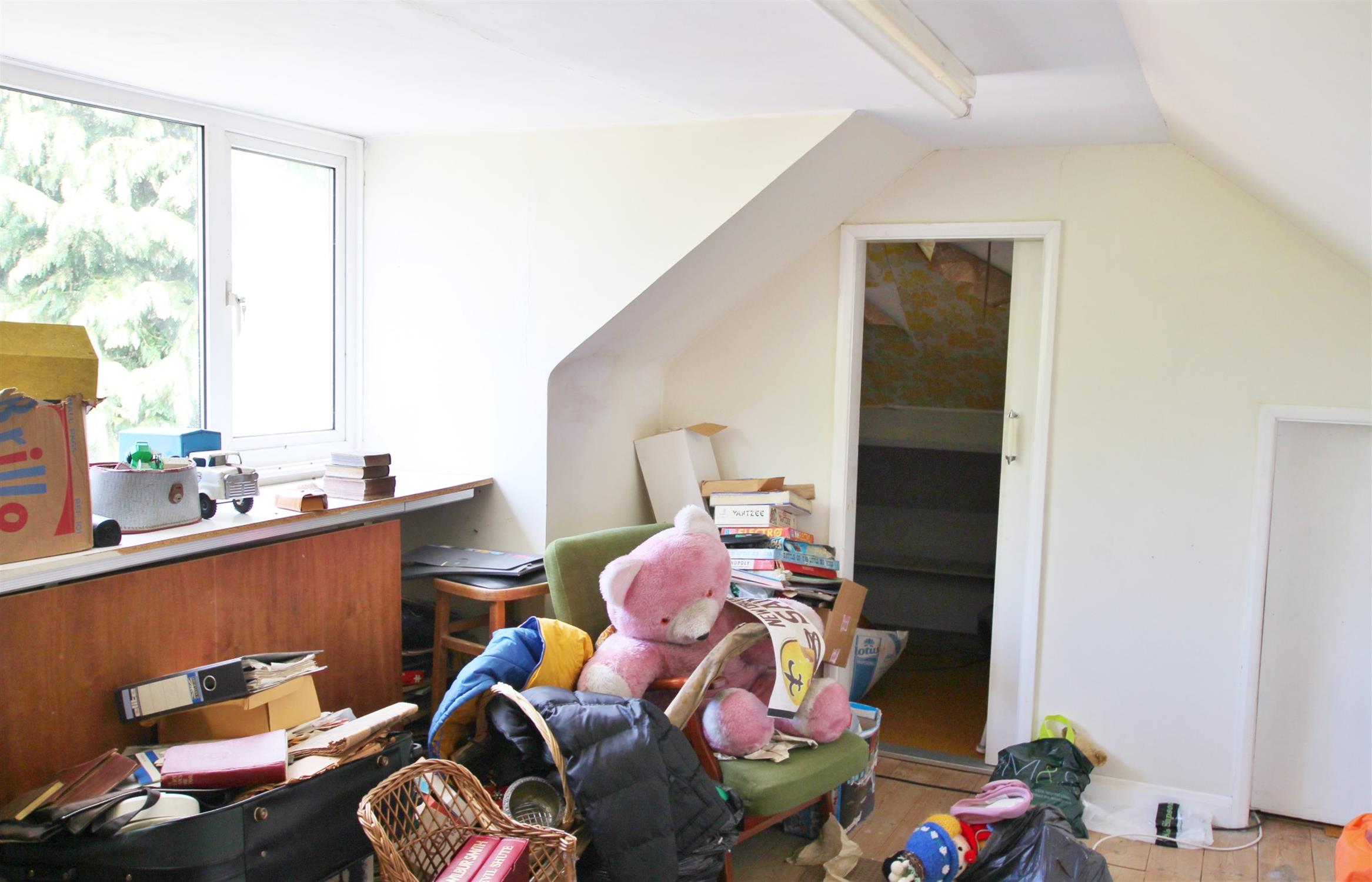 Accessed via pull down ladder. Smooth plastered ceiling. Floor boarding. Radiator. Access to built-in eaves storage as well as walk in cupboard with sliding door. Double glazed dormer window offering far reaching views towards Eastleigh and Southampton Airport. Fluorescent strip lighting.