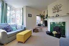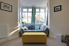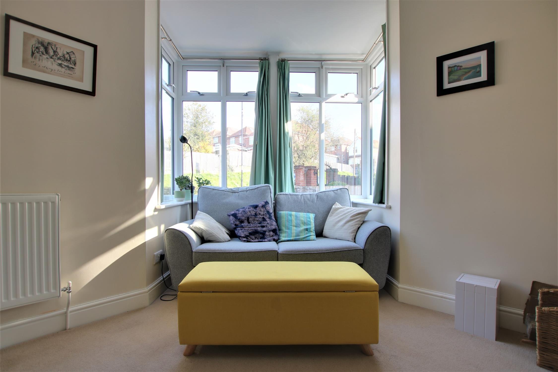 Carpet flooring, dual aspect triple glazed windows to front and side aspect including a charming corner bay window, period feature fireplace with original tiled surround, multiple electrical sockets, smooth walls and ceiling, radiator.