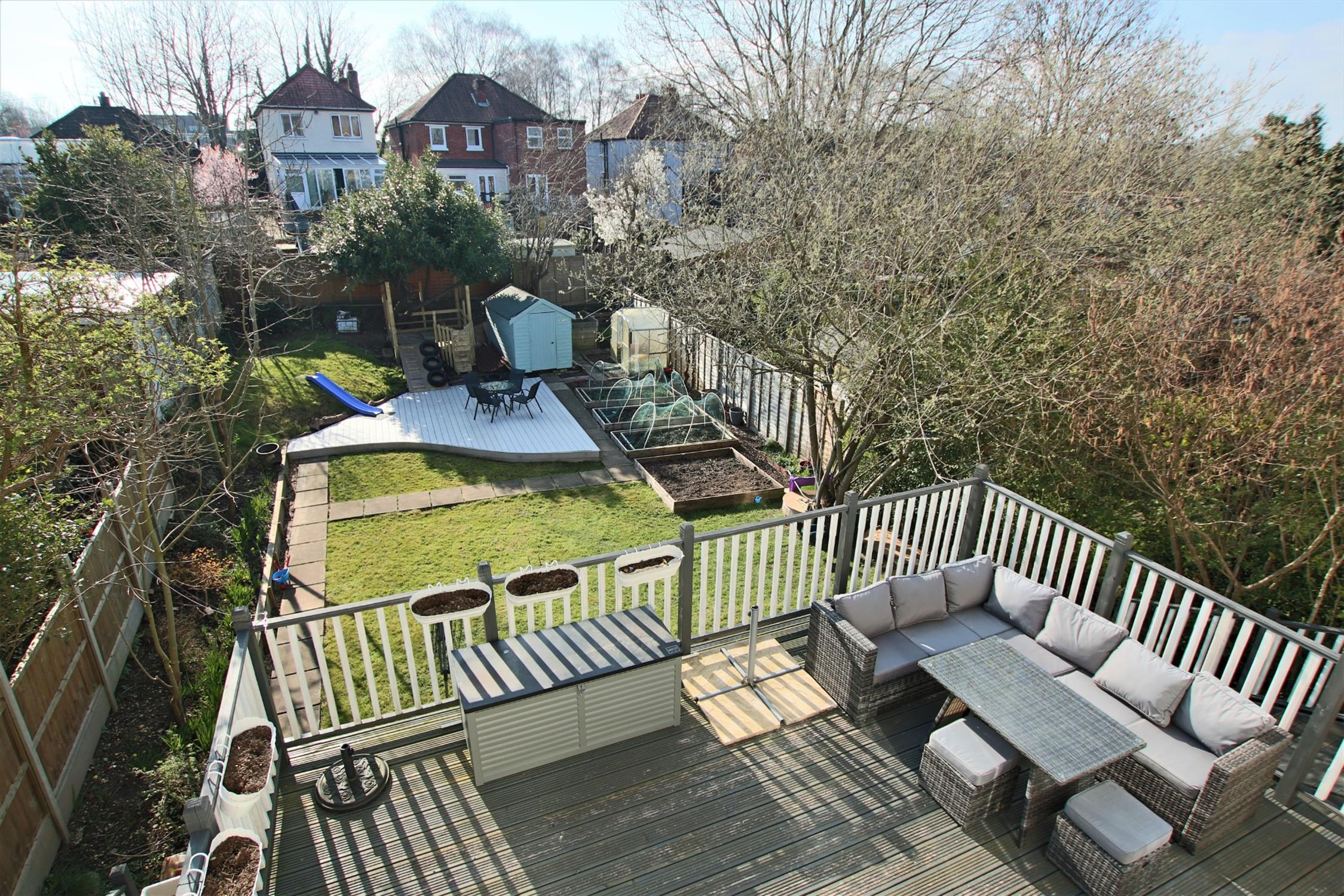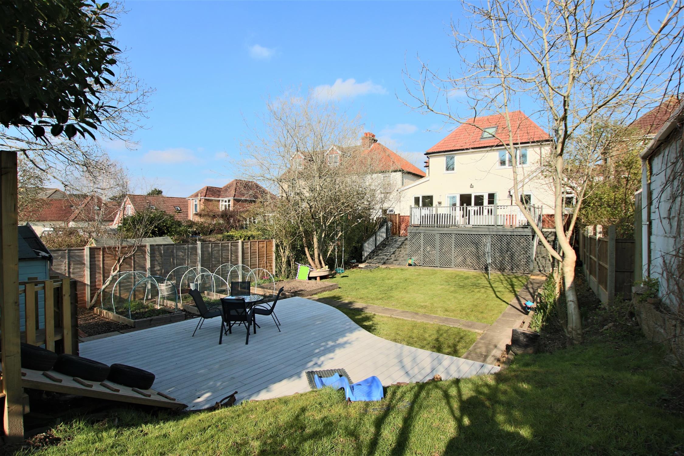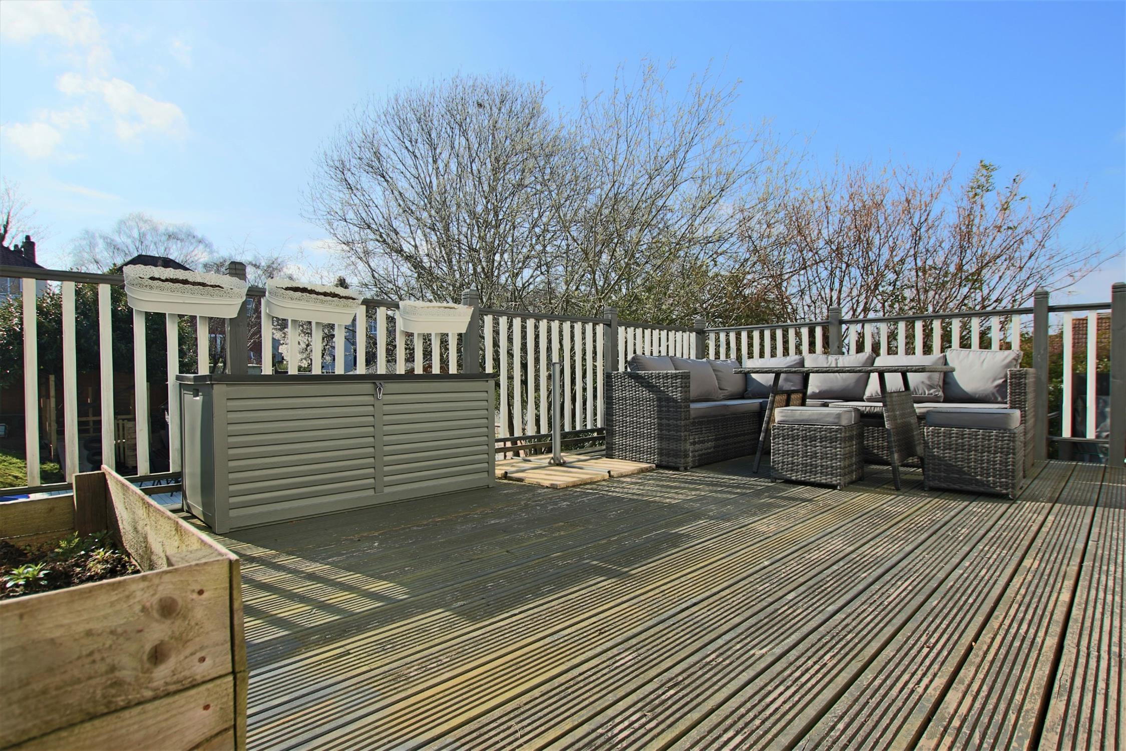 The rear garden benefits from a westerly facing aspect and features a raised decking area just off the open plan kitchen living room with steps leading down to the main garden. The owners have recently landscaped the area adding a sizable decking area, vegetable plots and the rest mainly laid to lawn.