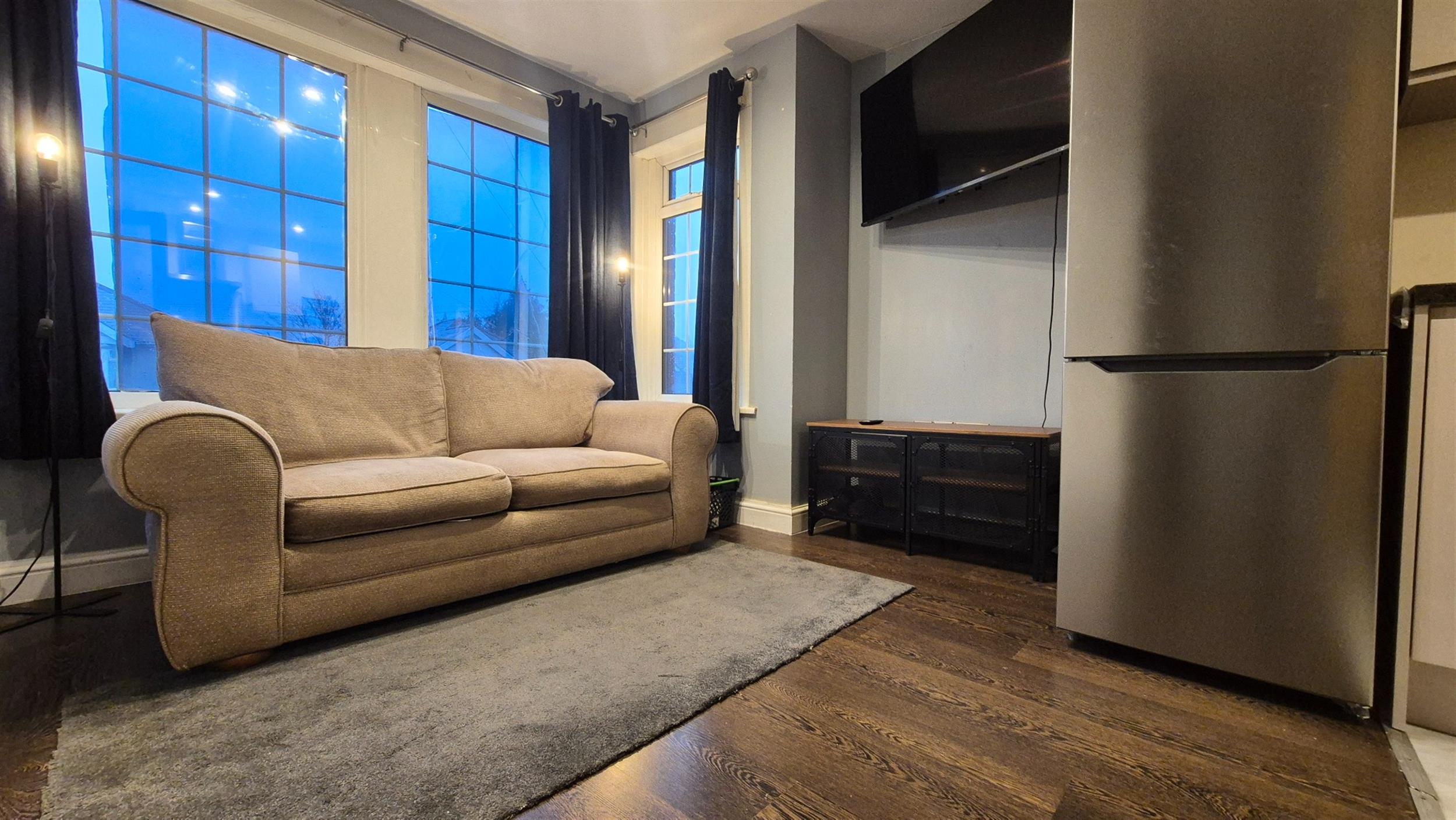 Good-sized wooden-floored room with windows to front of property overlooking Bitterne Road West. Furniture consists of: Sofa and TV.