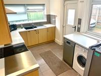 KITCHEN – Various wall and base units. Windows to rear and side and door to back parking area. Kitchen appliances consist of washing machine, slimline dishwasher, fridge/freezer and electric oven.