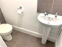 BATHROOM – White suite with bath with shower over, sink and toilet. Window to side.