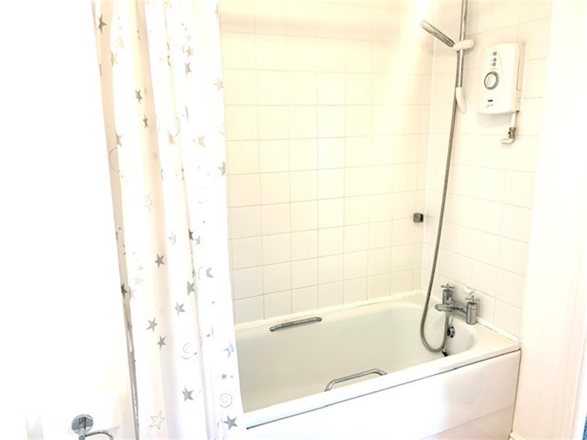 BATHROOM - White suite: Bath with electric shower over, w.c. and sink.