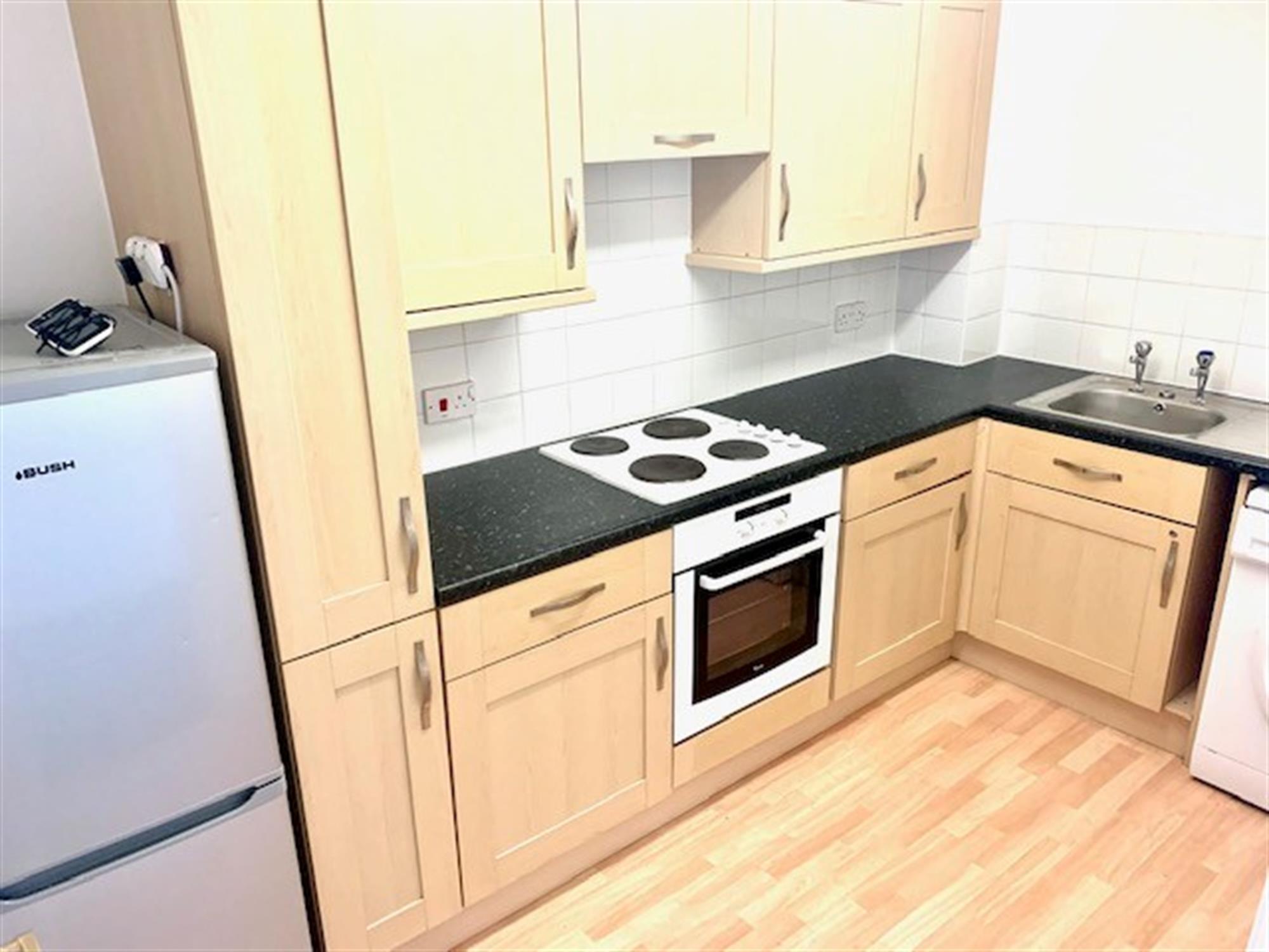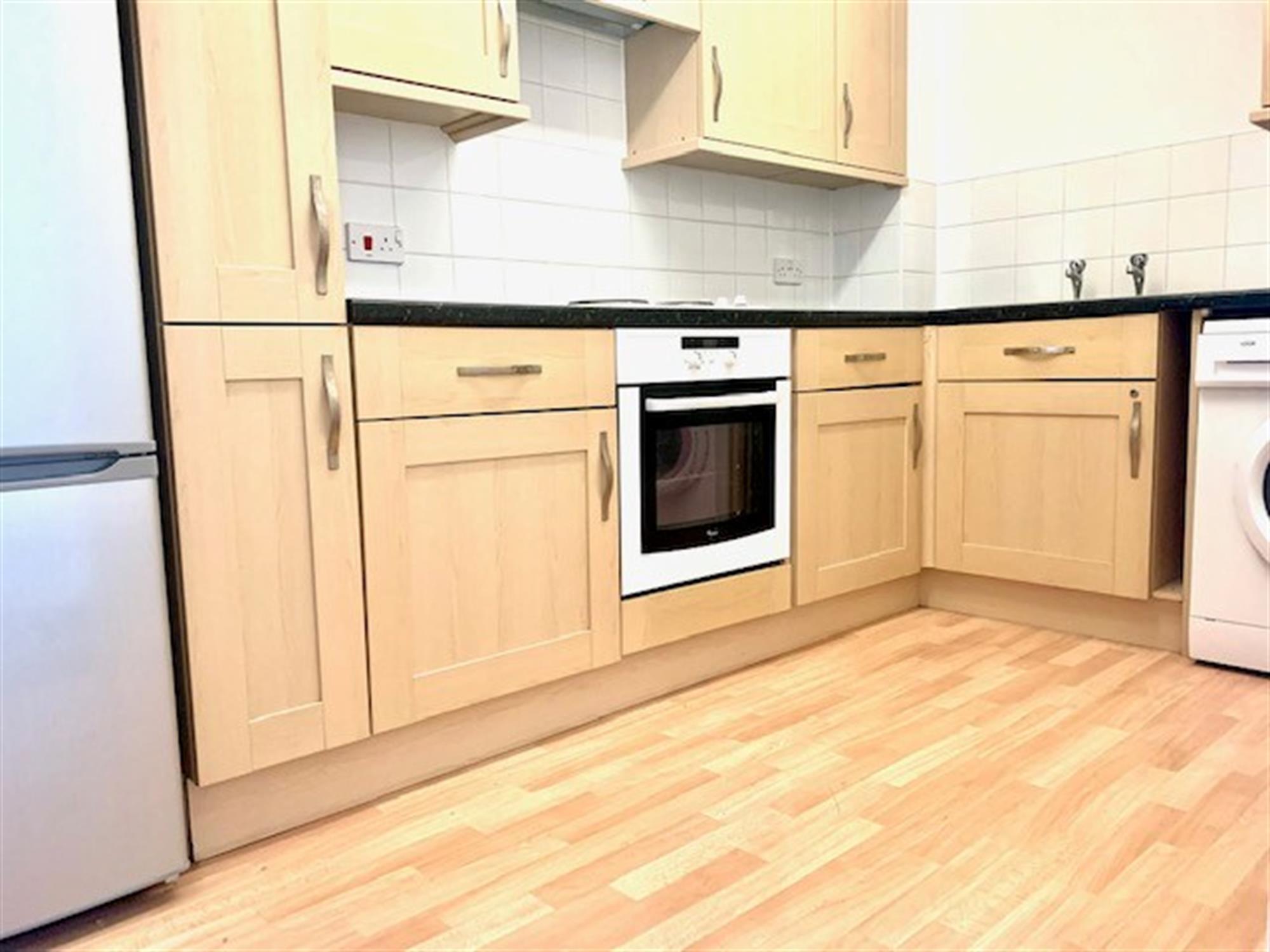 KITCHEN - Modern wall and base units with appliances consisting of: Electric hob, electric oven, fridge/freezer and washing machine.