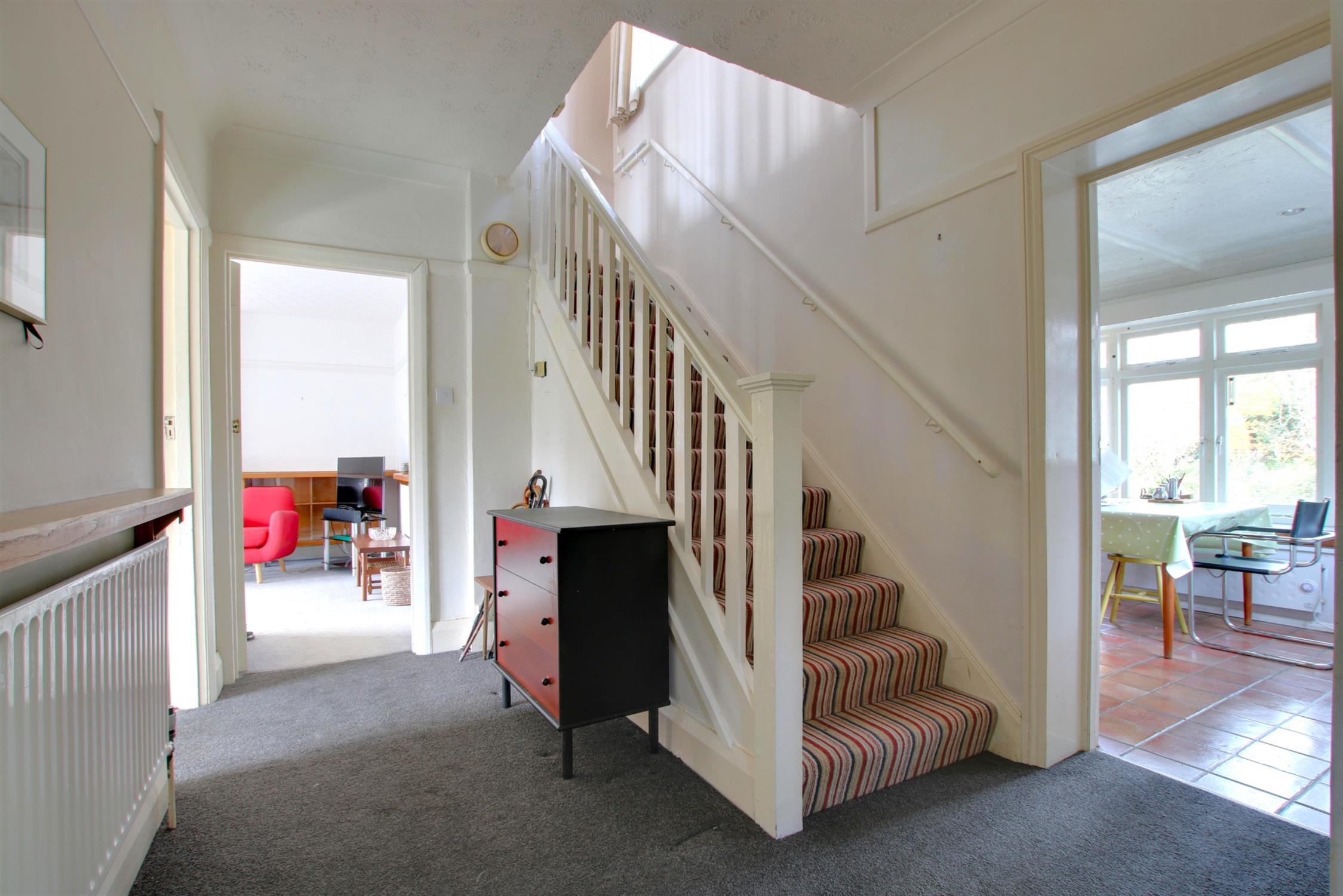 Carpeted. Picture rails and deep skirting boards. Doors to all rooms. Stairs to first floor. Single-glazed window to front aspect. Radiator.