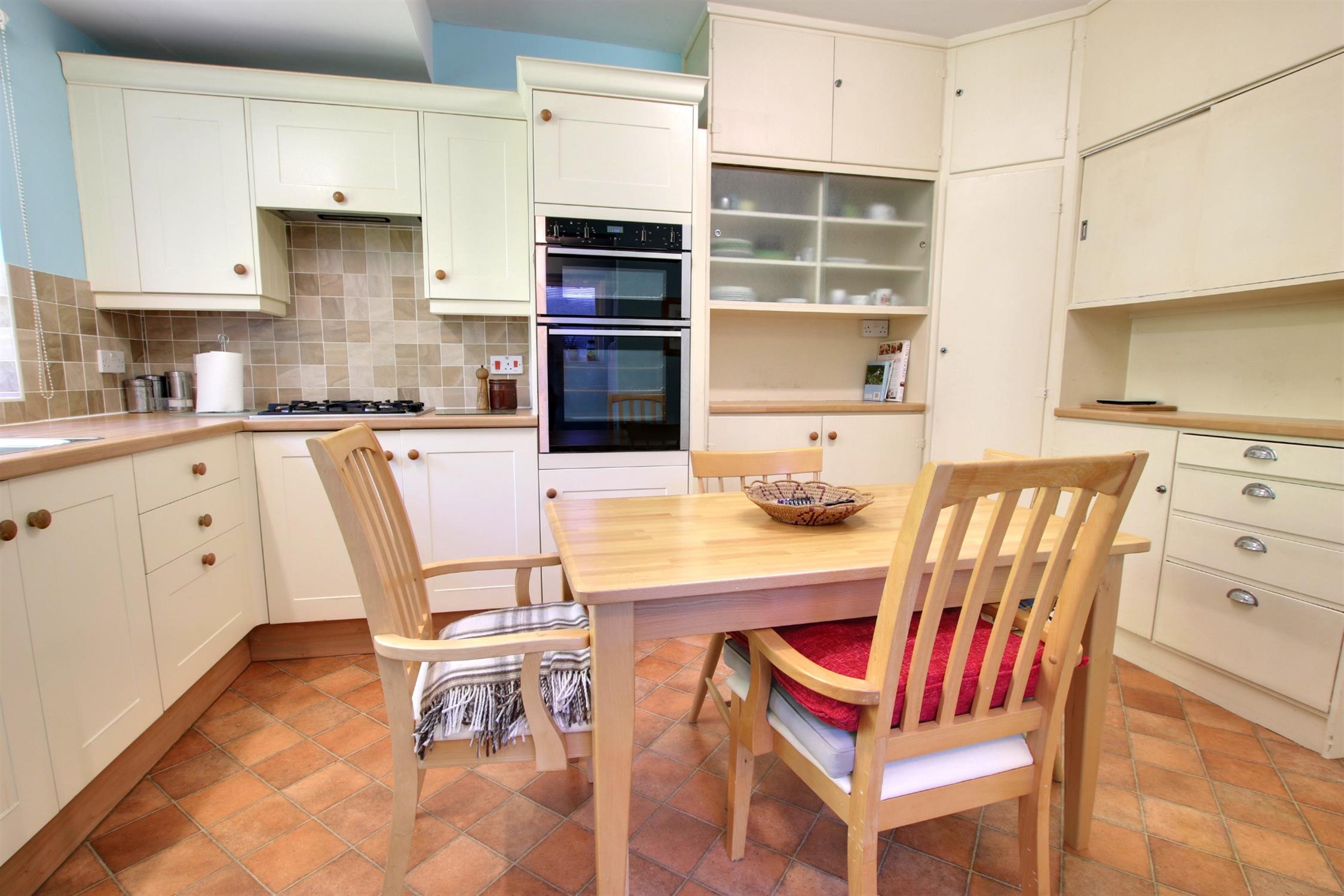 Kitchen comprises matching wall and base units. Wall-mounted boiler. Inset stainless steel sink with drainers. Integrated electric fan oven, gas hob with extractor. Space for tall standing fridge-freezer. Space and plumbing for washing machine. Lino flooring. Single-glazed windows to rear aspect. Doors leading WC and to garden. Radiator.