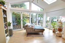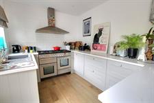 Wooden Flooring, smooth walls and ceiling, Radiator, double glazed windows and bi-fold patio doors opening onto the garden, Space for dining table, range of wall and ceiling lighting. Fitted kitchen units with built in appialnces including dishwasher and fridge/freezer. Range style gas cooker with 6 ring hob and extractor over. White speckled granite work surfaces with inset sink and tiled splashback.