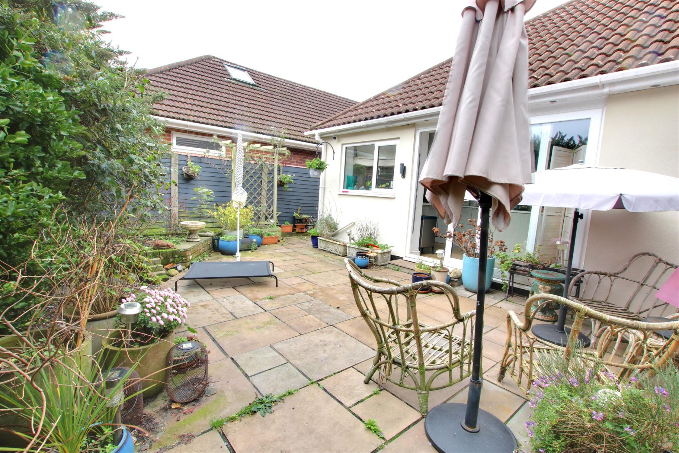 Off road parking for two cars to the front of the property, side pedestrian access to rear garden, enclosed by fencing with large paved patio area, shed, outside tap and lighting.