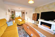 Engineered oak wooden flooring, Double glazed bay window to the front aspect, smooth walls and ceiling, Electric feature fireplace. Radiators. French doors to the rear opening onto the garden.