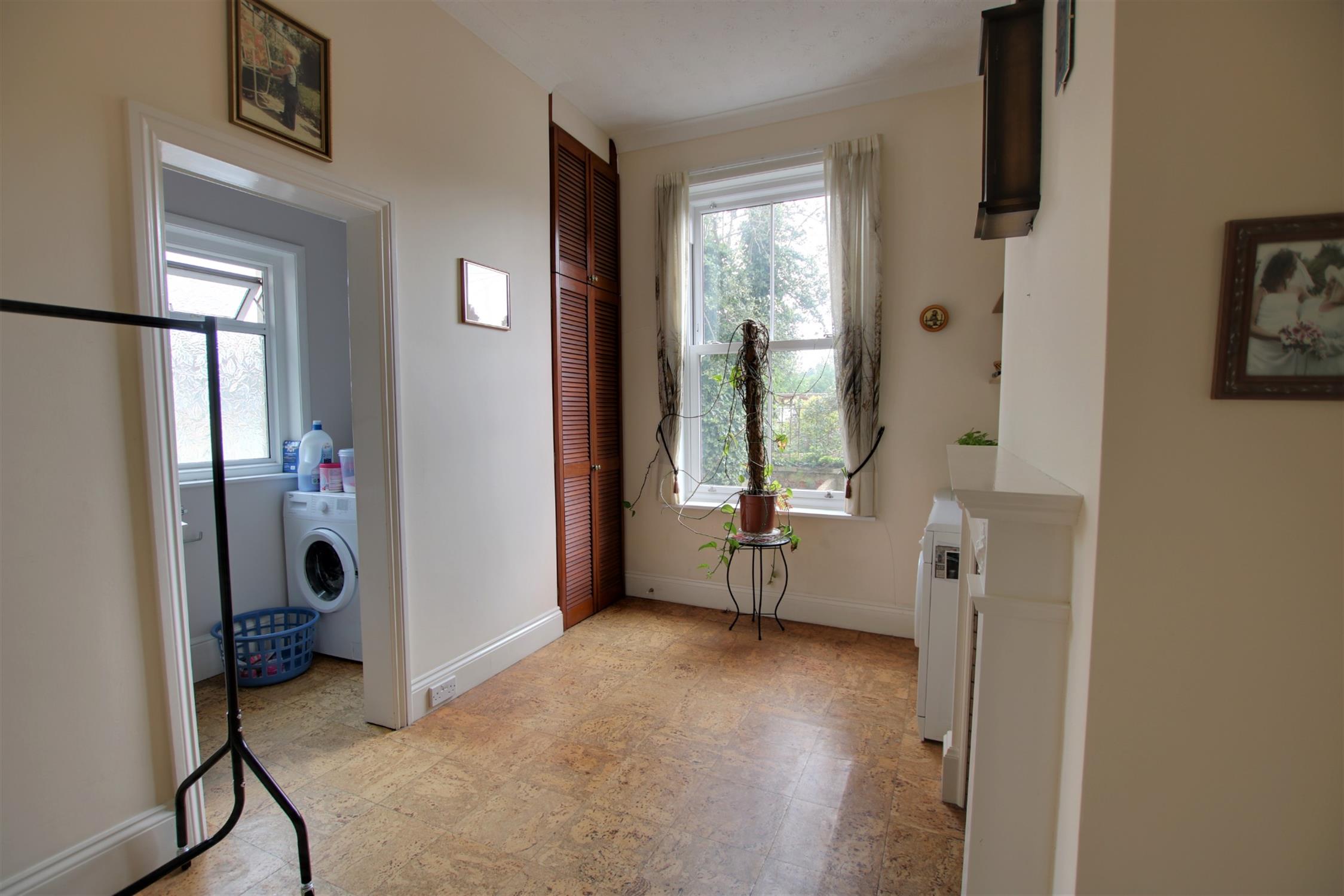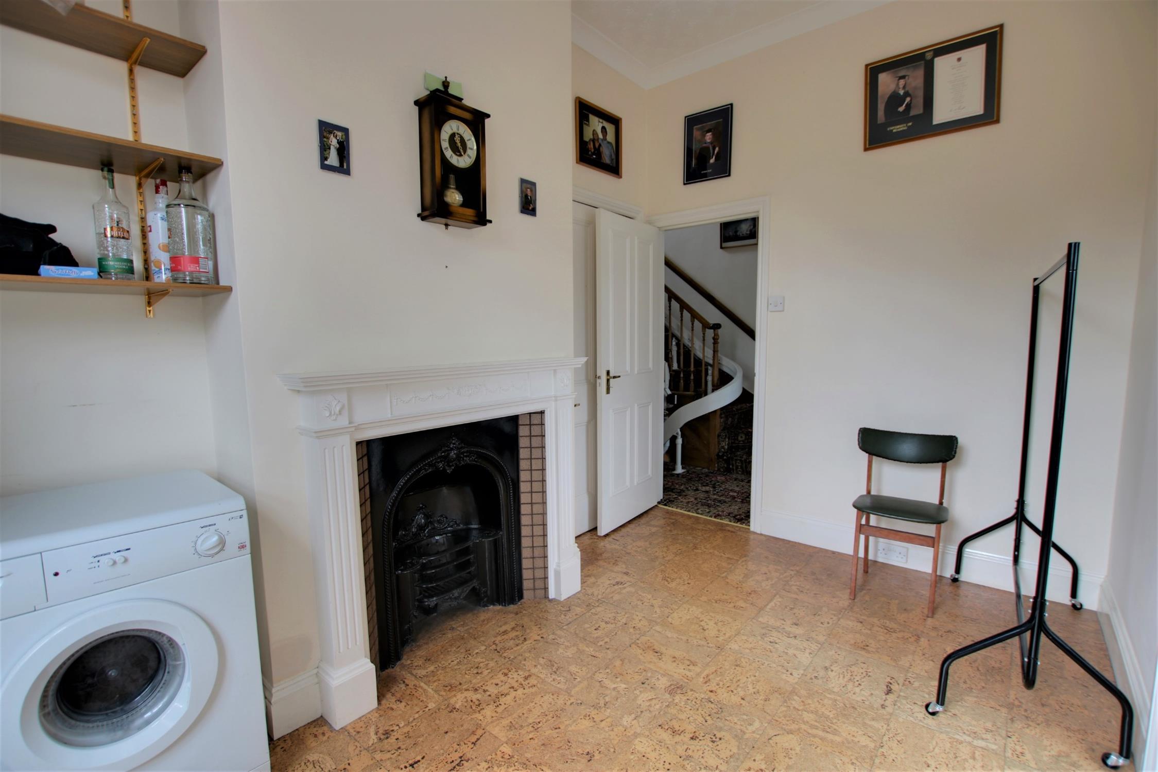 Triple glazed sash window to side aspect. Period feature fireplace. Space for tumble dryer. Storage cupboard. Door to:-