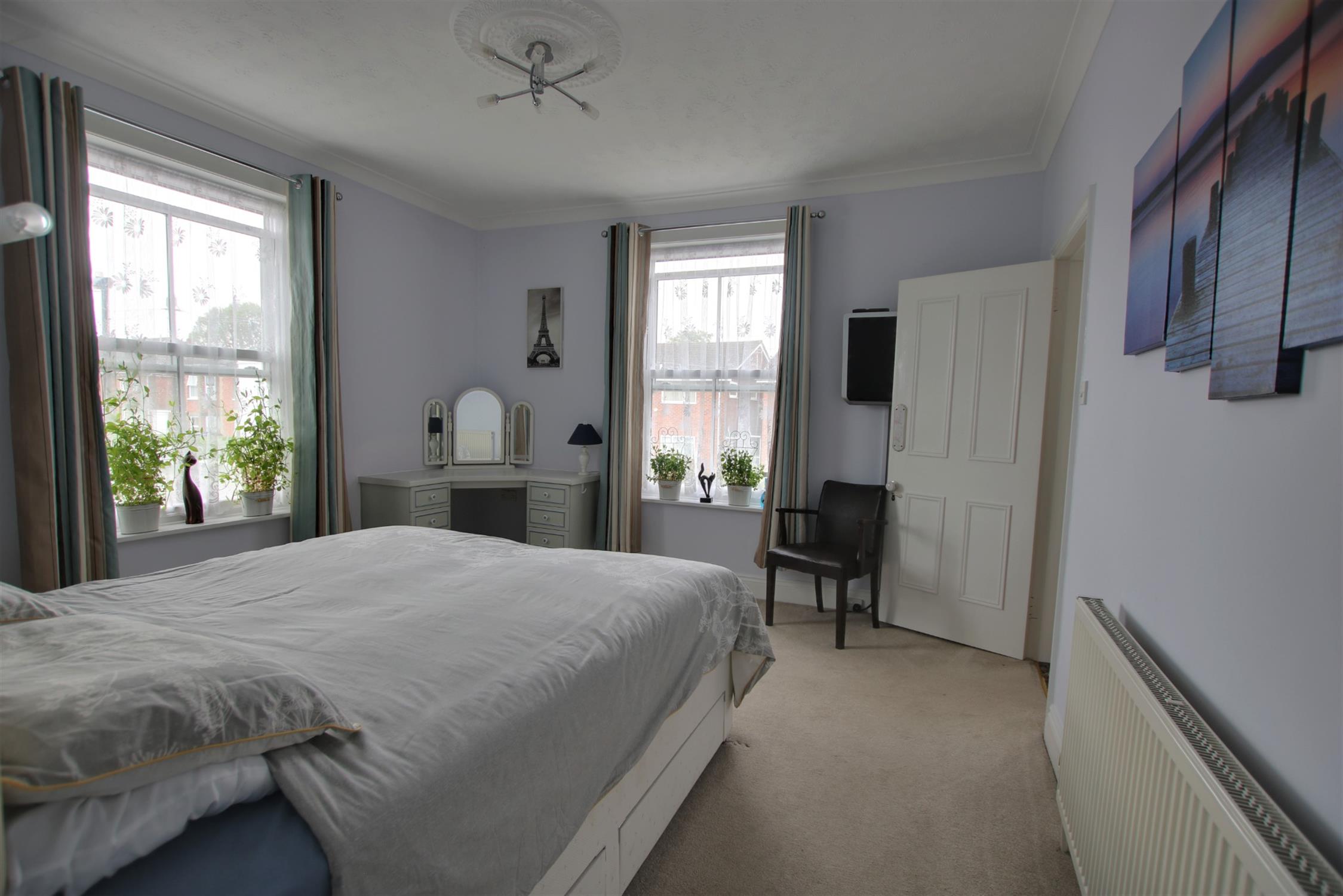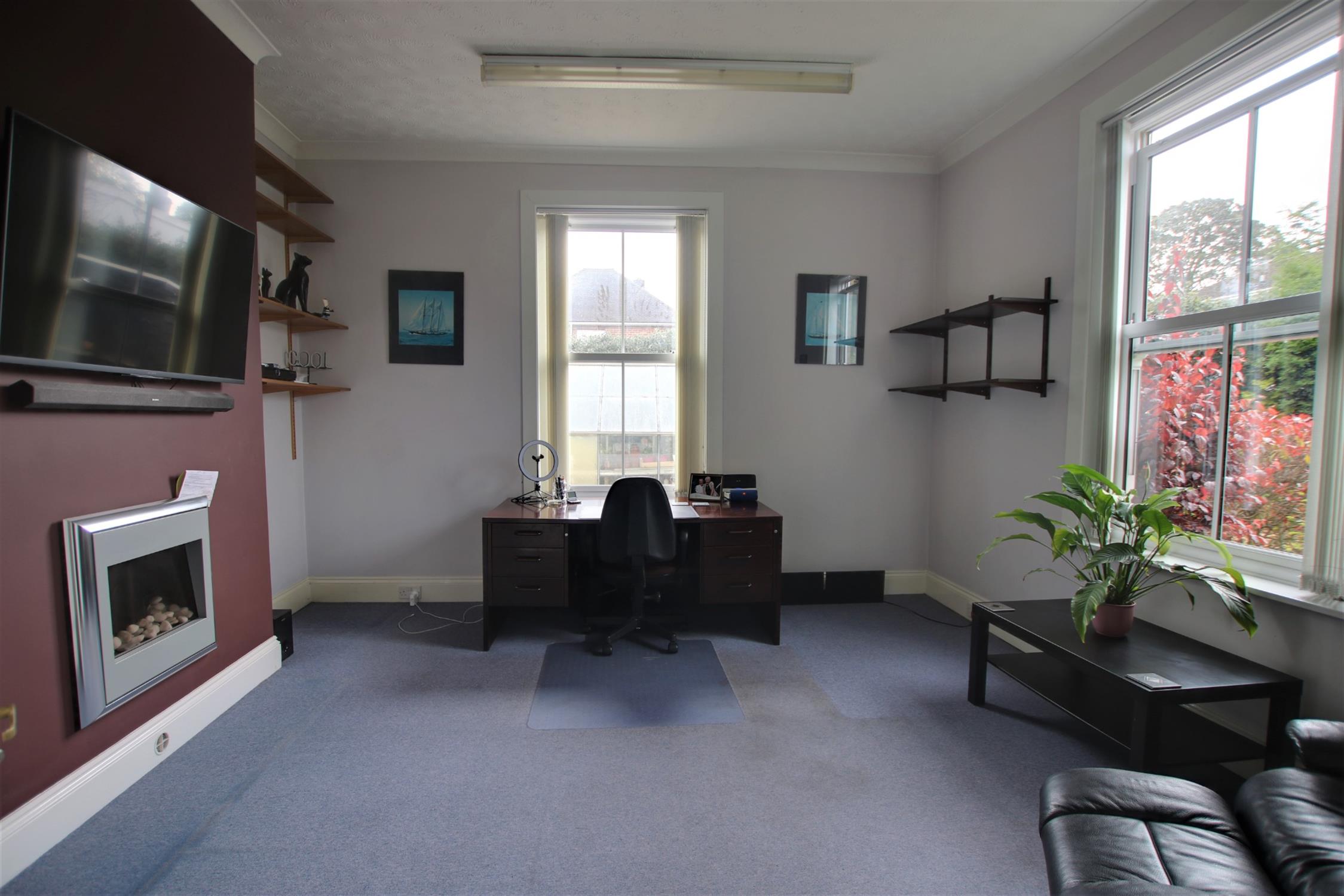Triple glazed sash windows to front and side aspects. Period cornicing to smooth ceiling. Ceiling rose. Radiator. Feature fireplace.
