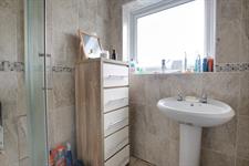 Double glazed window to rear elevation. Quadrant shower cubicle with wall mounted shower unit. Pedestal wash hand basin. Tiled walls and floor. Heated towel rail.