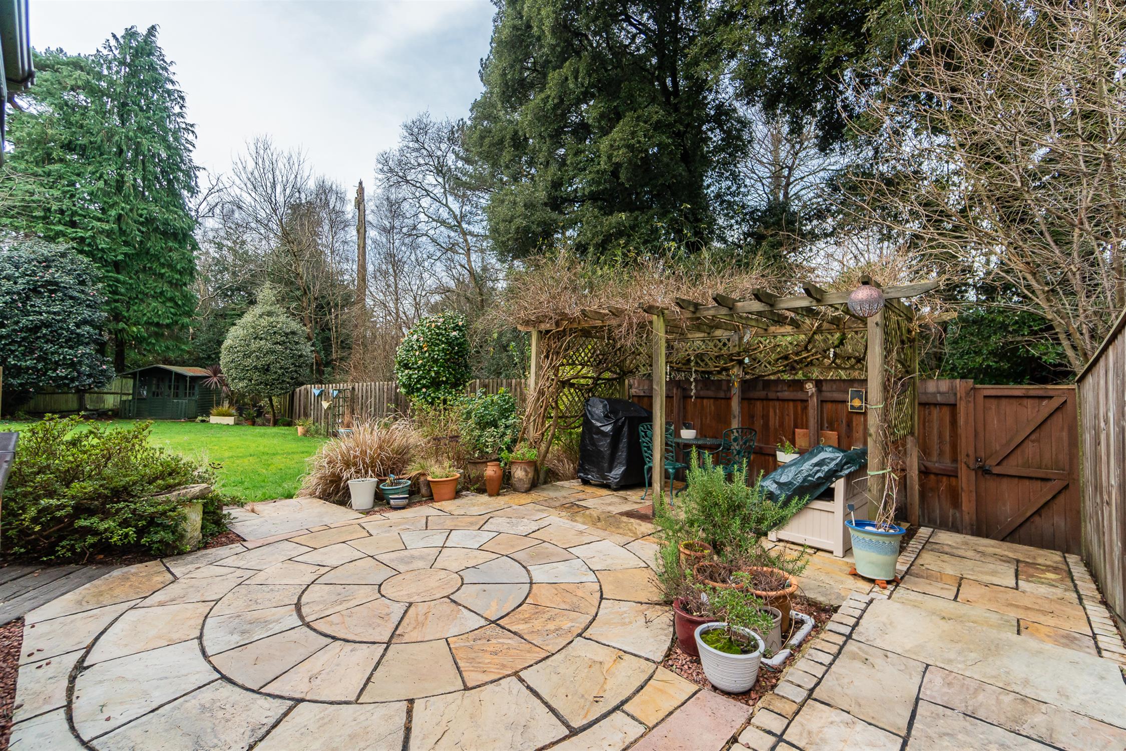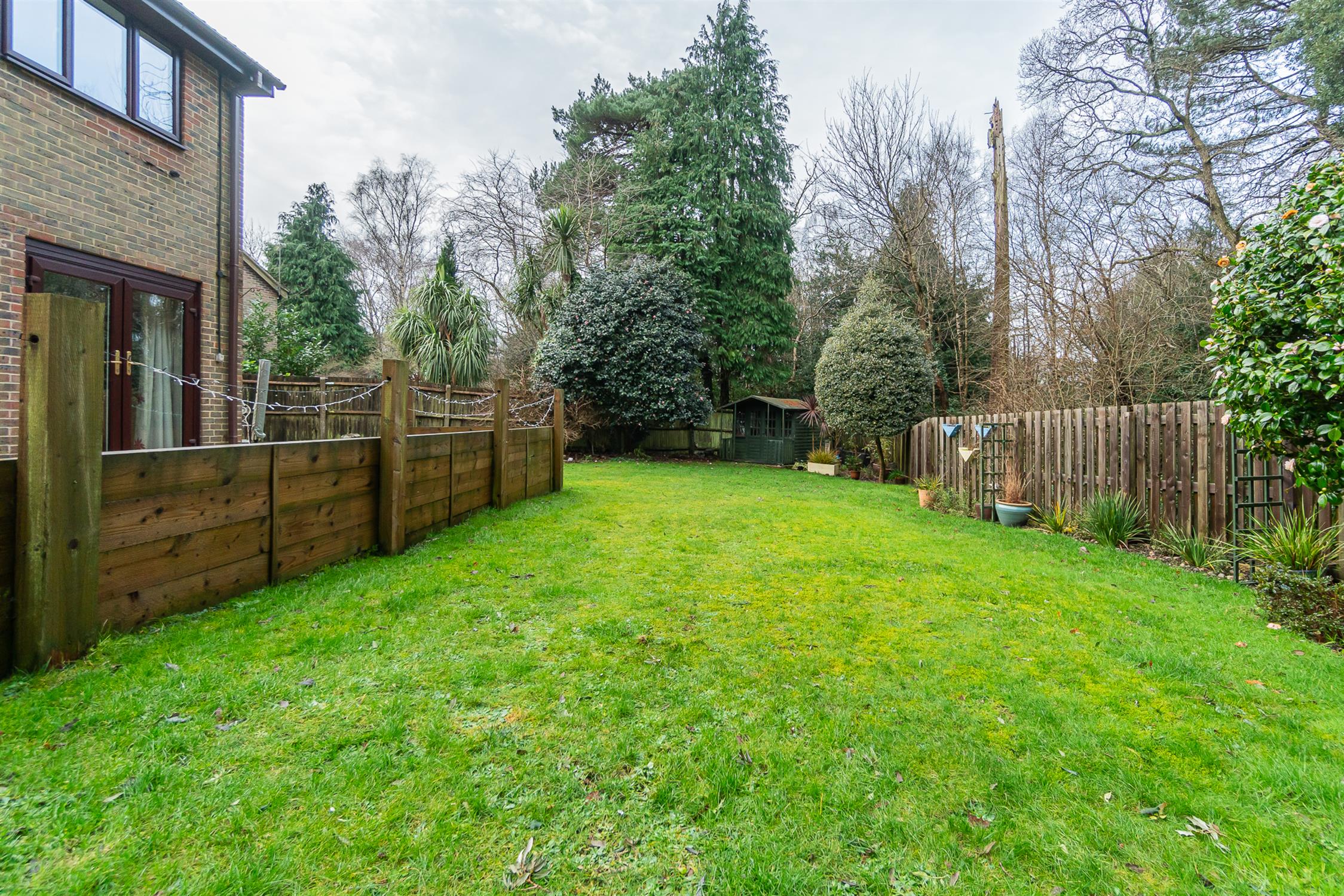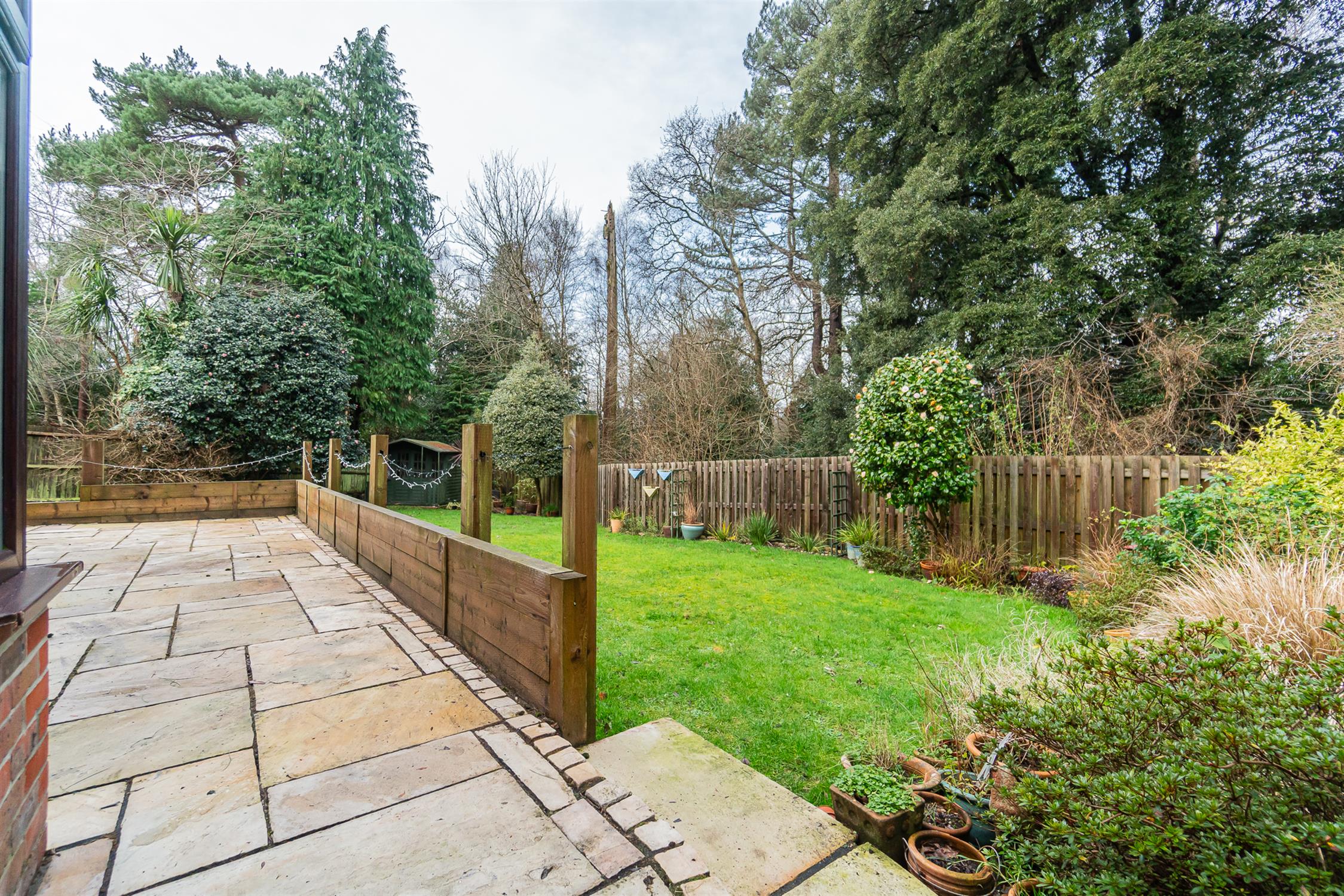 Backing onto woodland. Fencing to boundaries. Laid to lawn. Numerous mature shrubs, trees and bushes. Timber garden shed. Pergola with climbing plants. Patio area. Gate offering access to rear woodland. Patio adjoining the rear with wooden fencing. Further patio area to the side. Well-stocked flower beds.