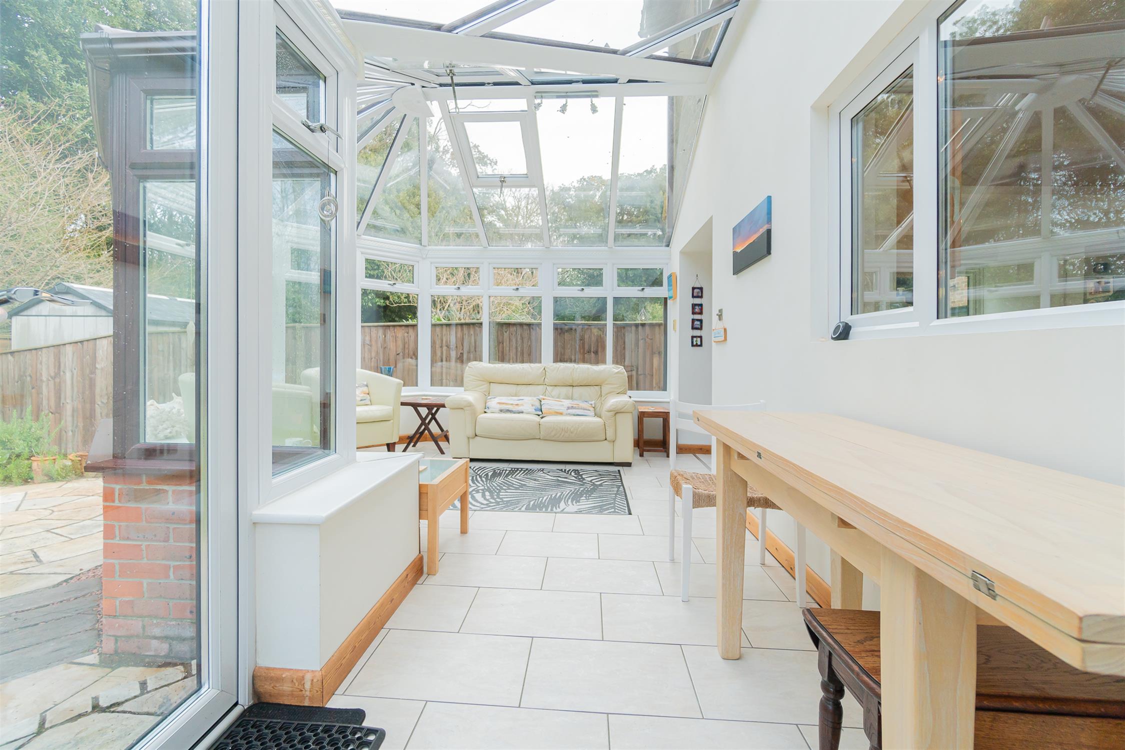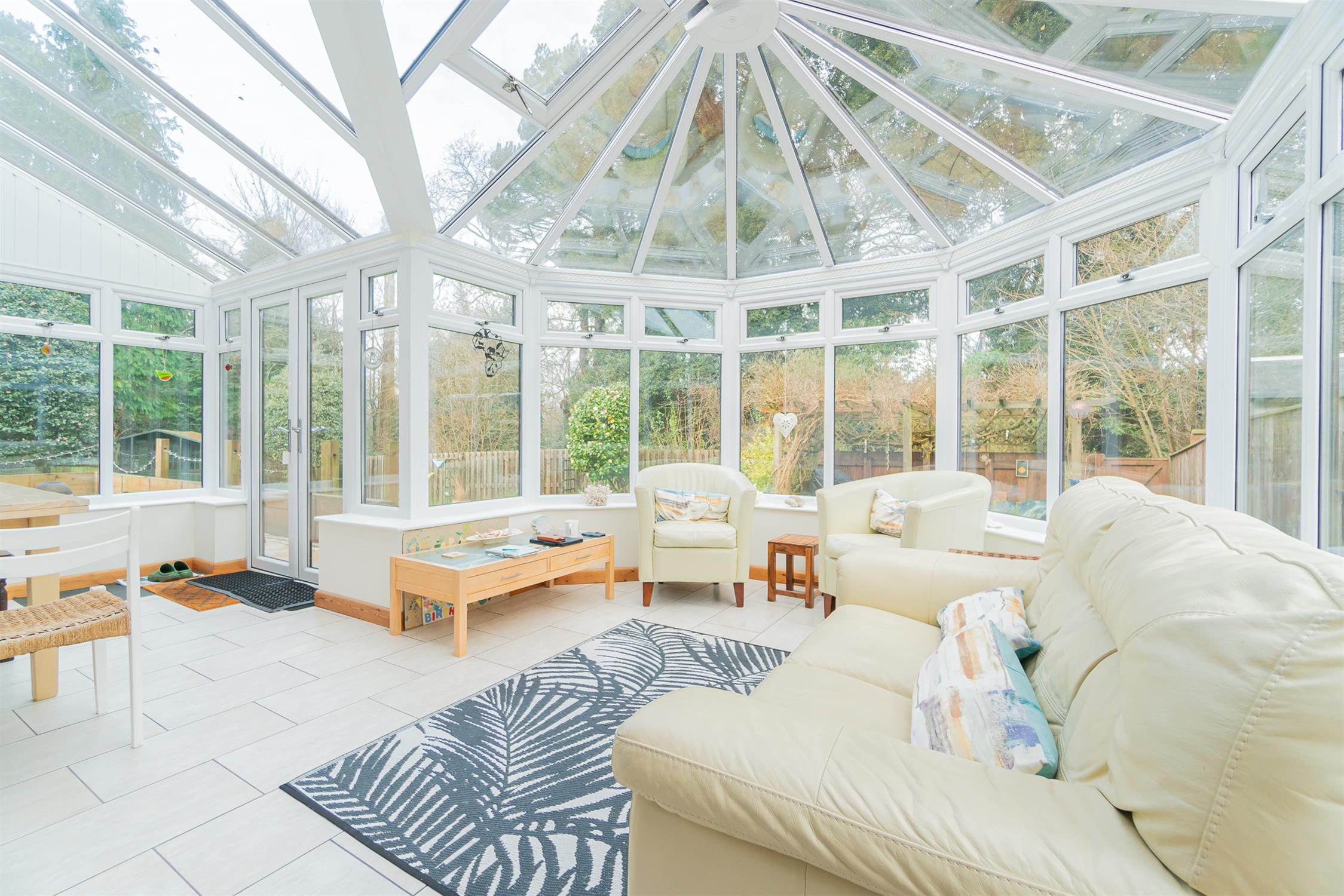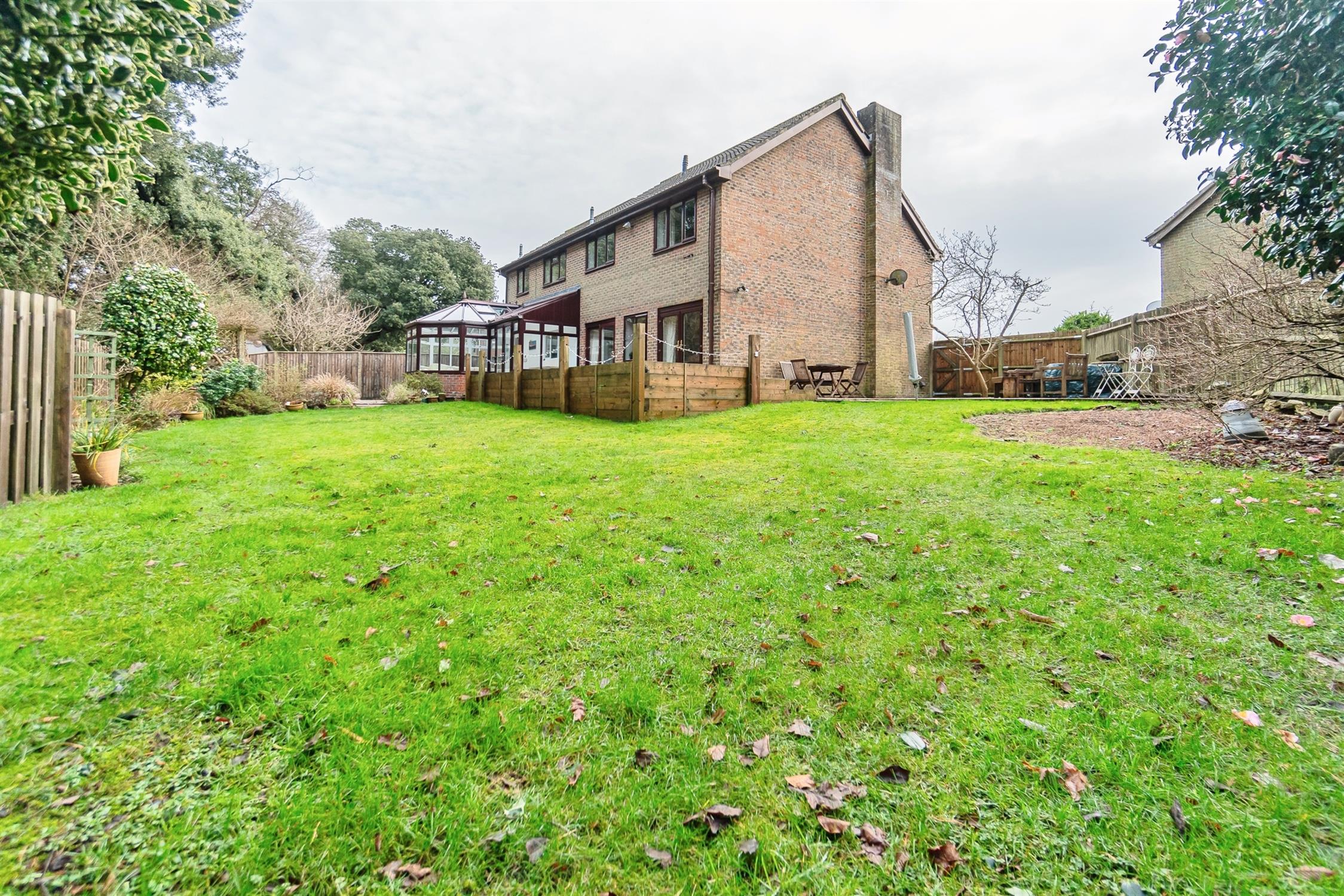 Backing onto woodland. Fencing to boundaries. Laid to lawn. Numerous mature shrubs, trees and bushes. Timber garden shed. Pergola with climbing plants. Patio area. Gate offering access to rear woodland. Patio adjoining the rear with wooden fencing. Further patio area to the side. Well-stocked flower beds.