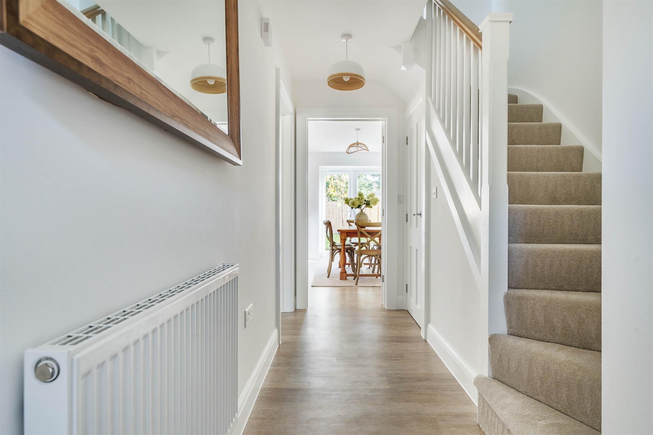 Painted staircase with oak handrails