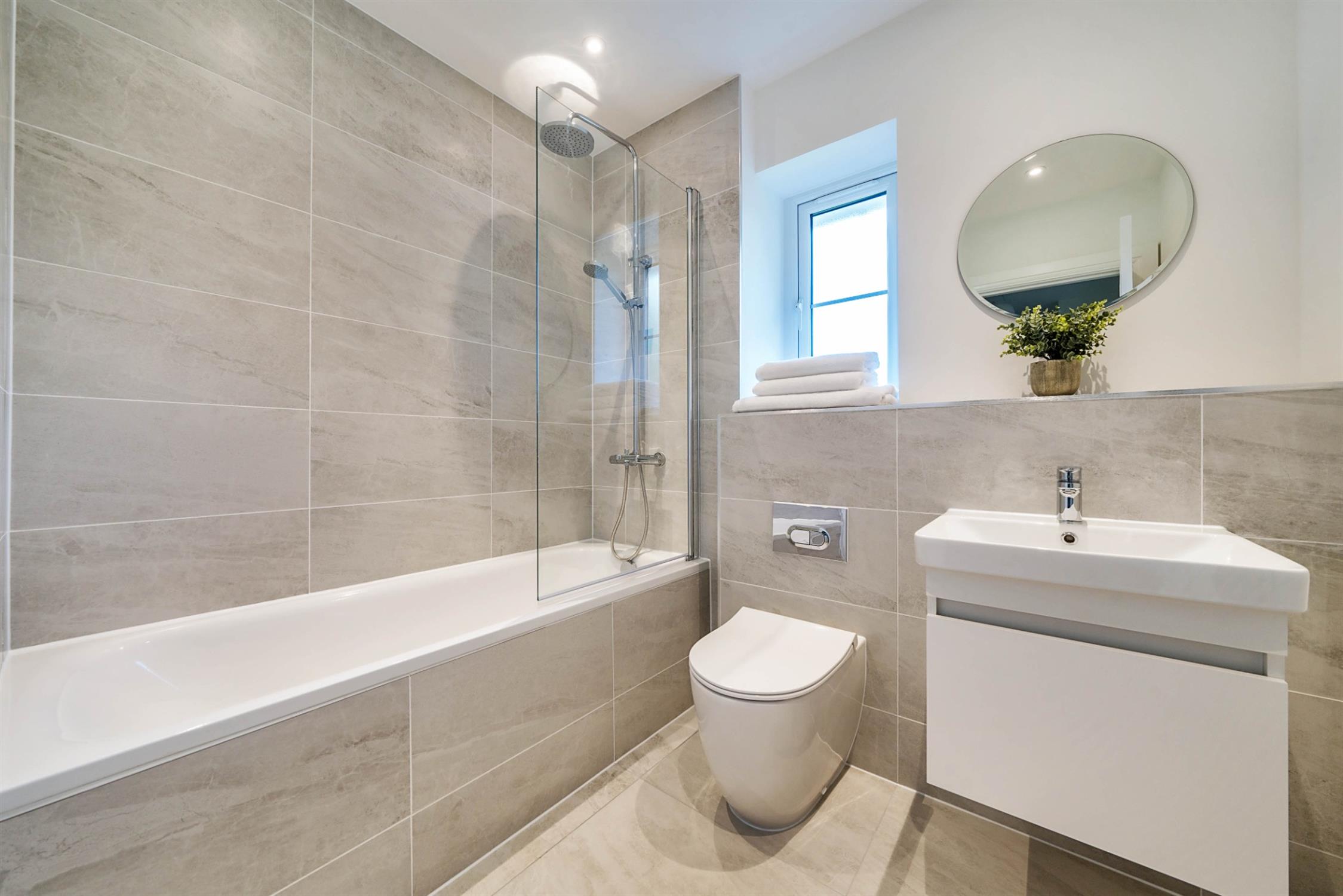 High quality sanitary ware, including low profile shower trays, with complimentary porcelain tiling to wet areas, heated towel rails.