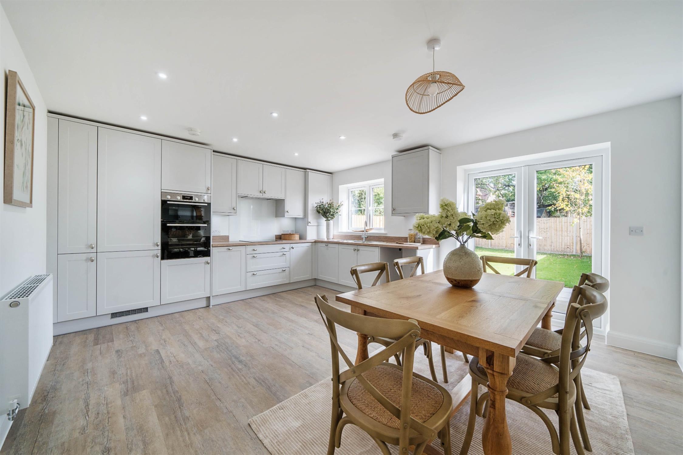Plot 5 Boorley Court offers three well-proportioned bedrooms and main bathroom, with the Master bedroom incorporating an en-suite shower room. The downstairs includes an open-plan kitchen/dining area at almost 21sqm, along with a large living room and separate WC. The home also benefits from a driveway and garage to the front of the property and a large sandstone patio in the rear garden.