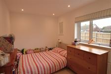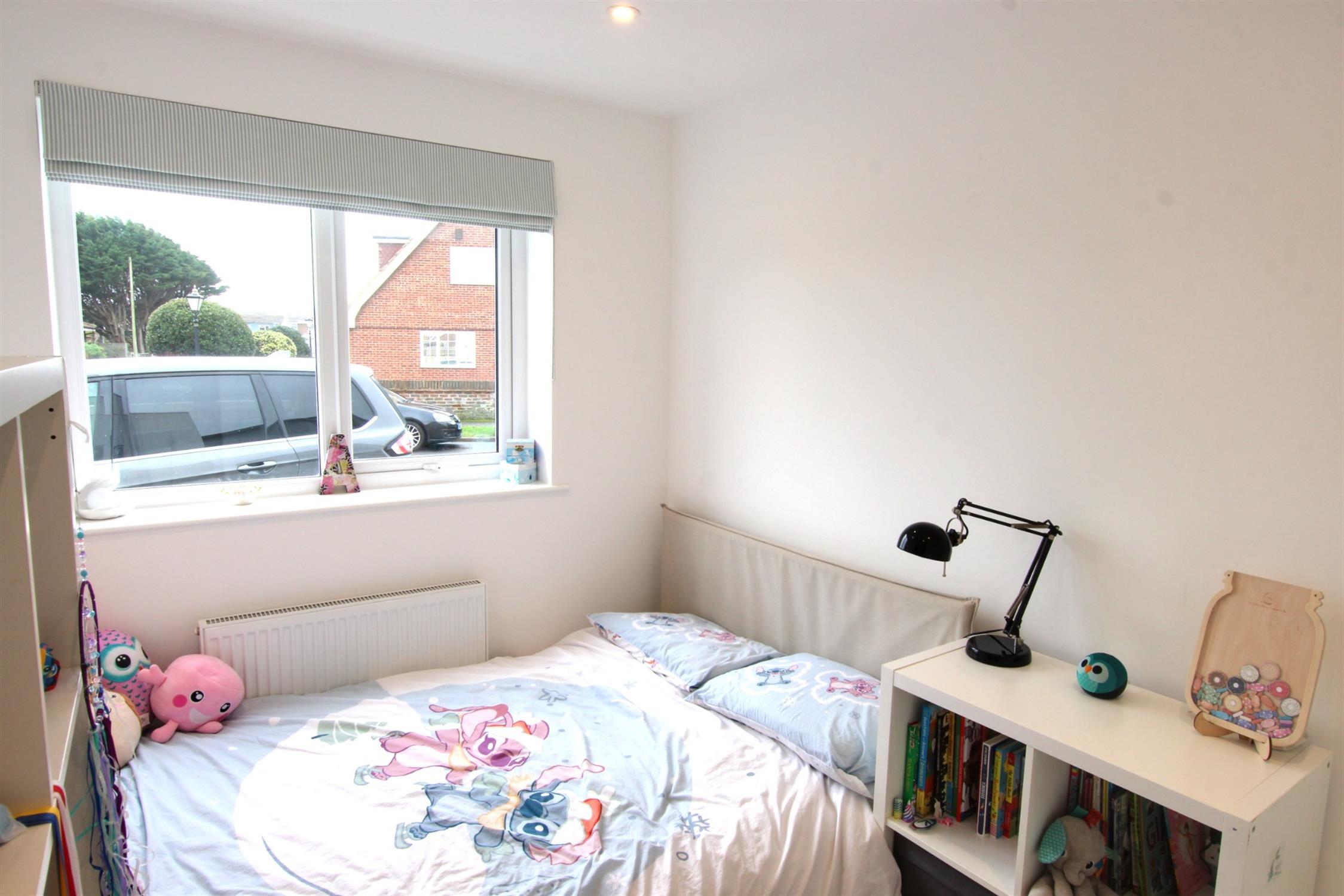 BEDROOM THREE: Double bedroom, fresh white walls, double-glazed UPVC window with Roman blind for privacy, a radiator under the window for comfortable heating, fitted wardrobe for convenient storage and cream carpet.