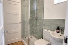SHOWER ROOM: Stylish and modern shower room with shower cubicle with mixer shower, WC, wash basin with vanity unit and double glazed UPVC window.