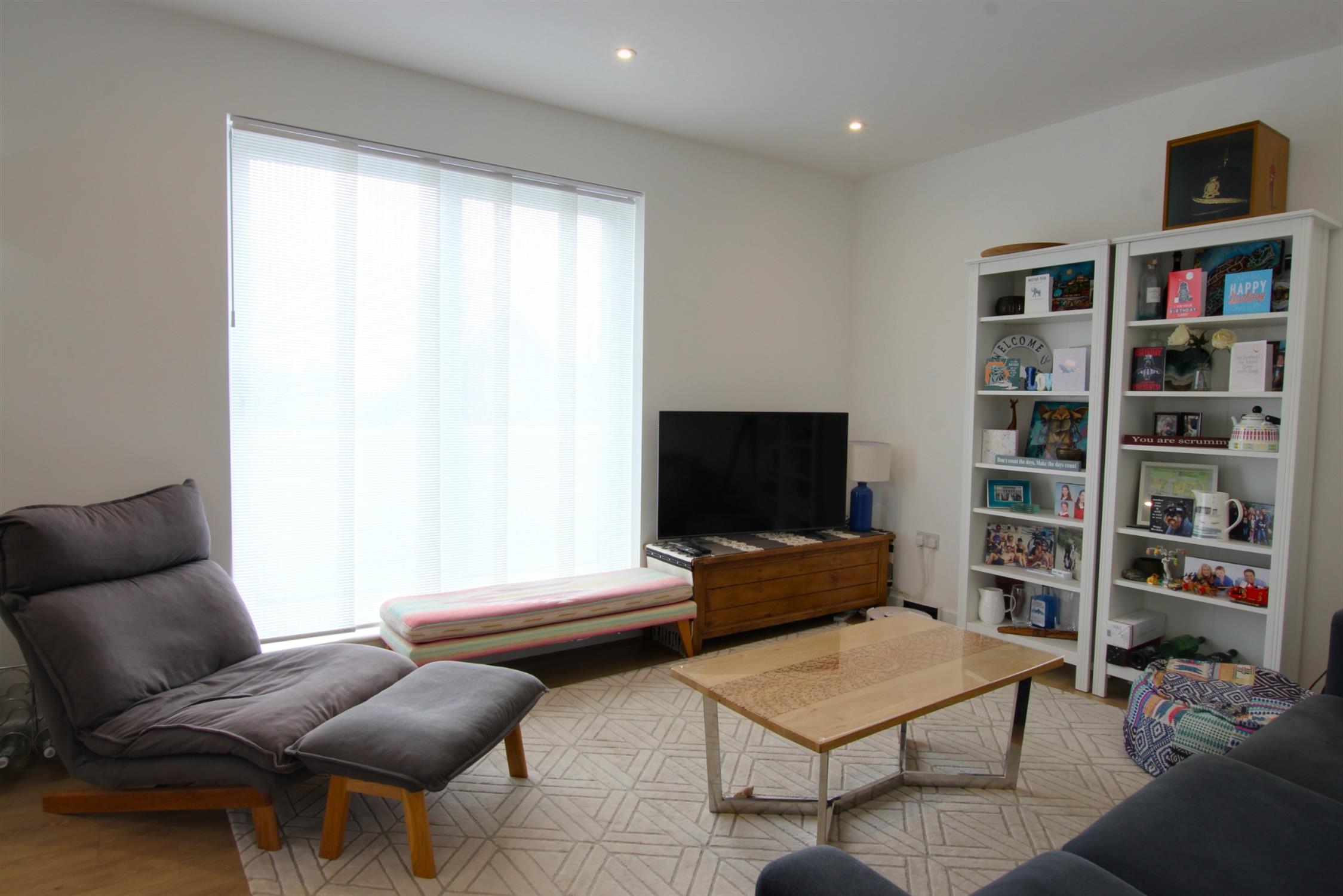 LOUNGE: A modern and welcoming open-plan living space, double-glazed patio doors leading onto a balcony, radiator for comfortable heating and laminate flooring.
