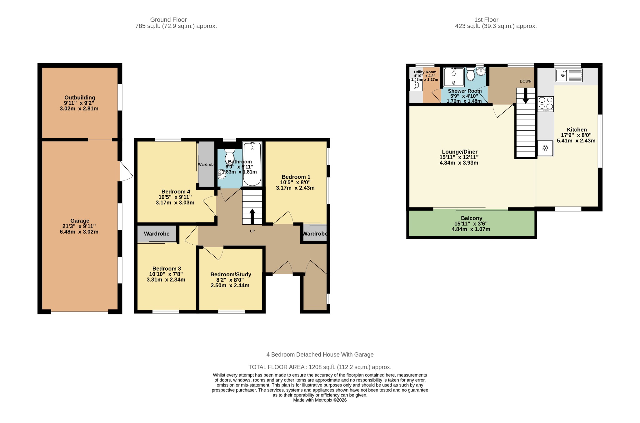 The property comprises four bedrooms on the lower level, three benefiting from built-in wardrobes along with a downstairs family bathroom. Upstairs there is a further shower room and a separate utility room.