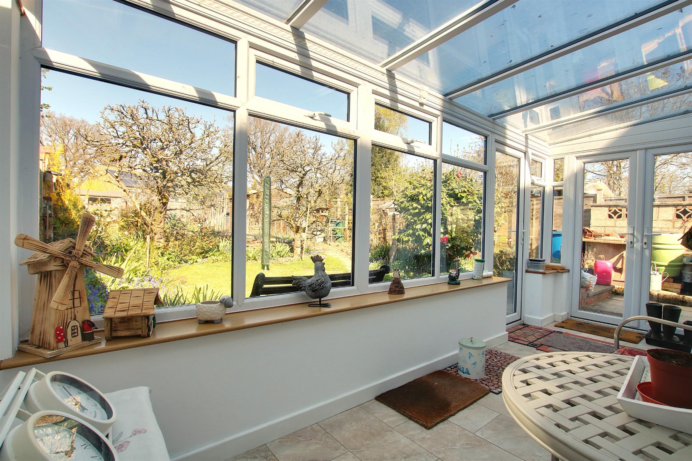 An L-shaped room of brick construction with double-glazed windows and both single and double doors to the garden, tiled floor, ample room for tumble dryer, additional freezer etc.