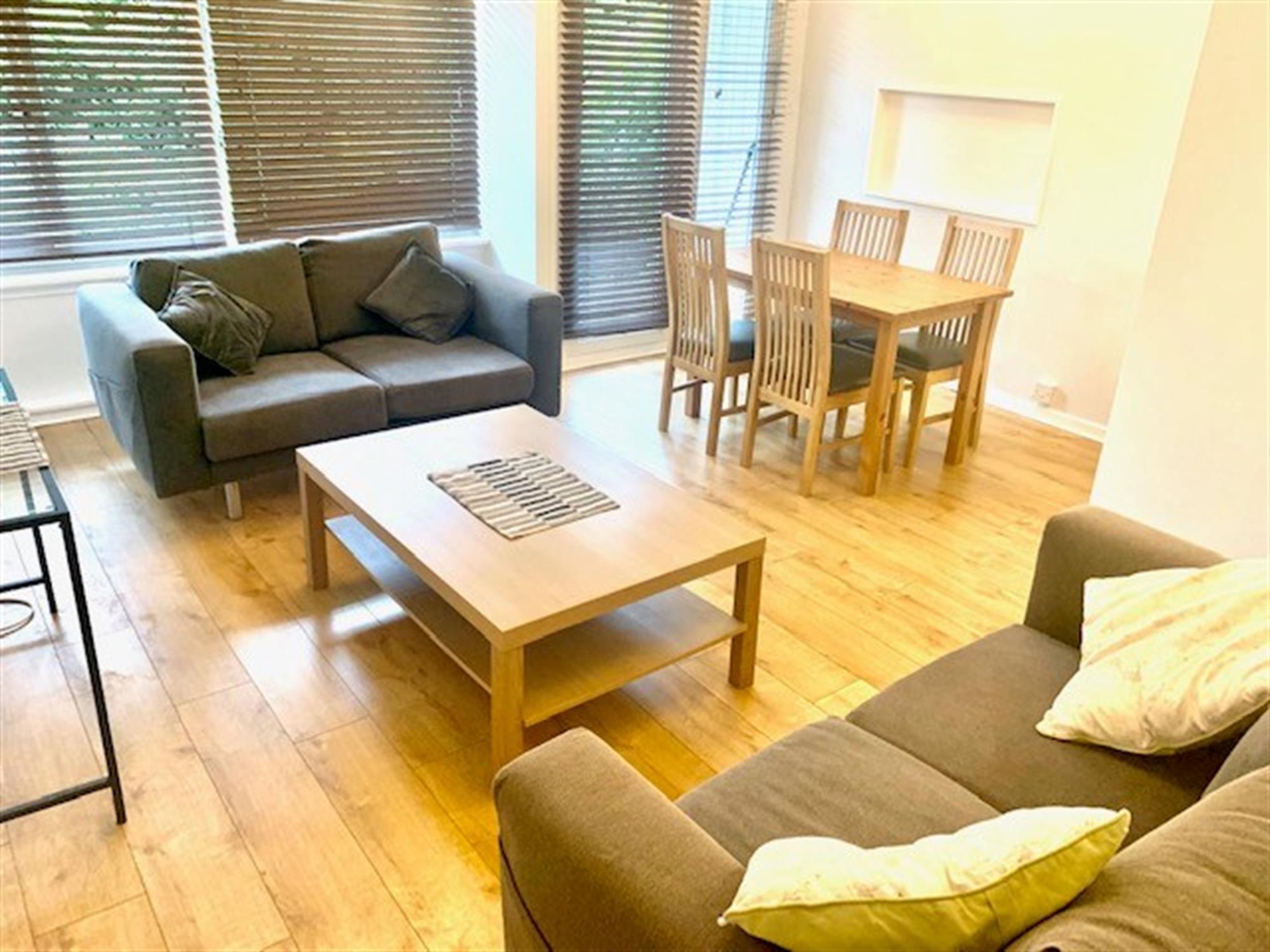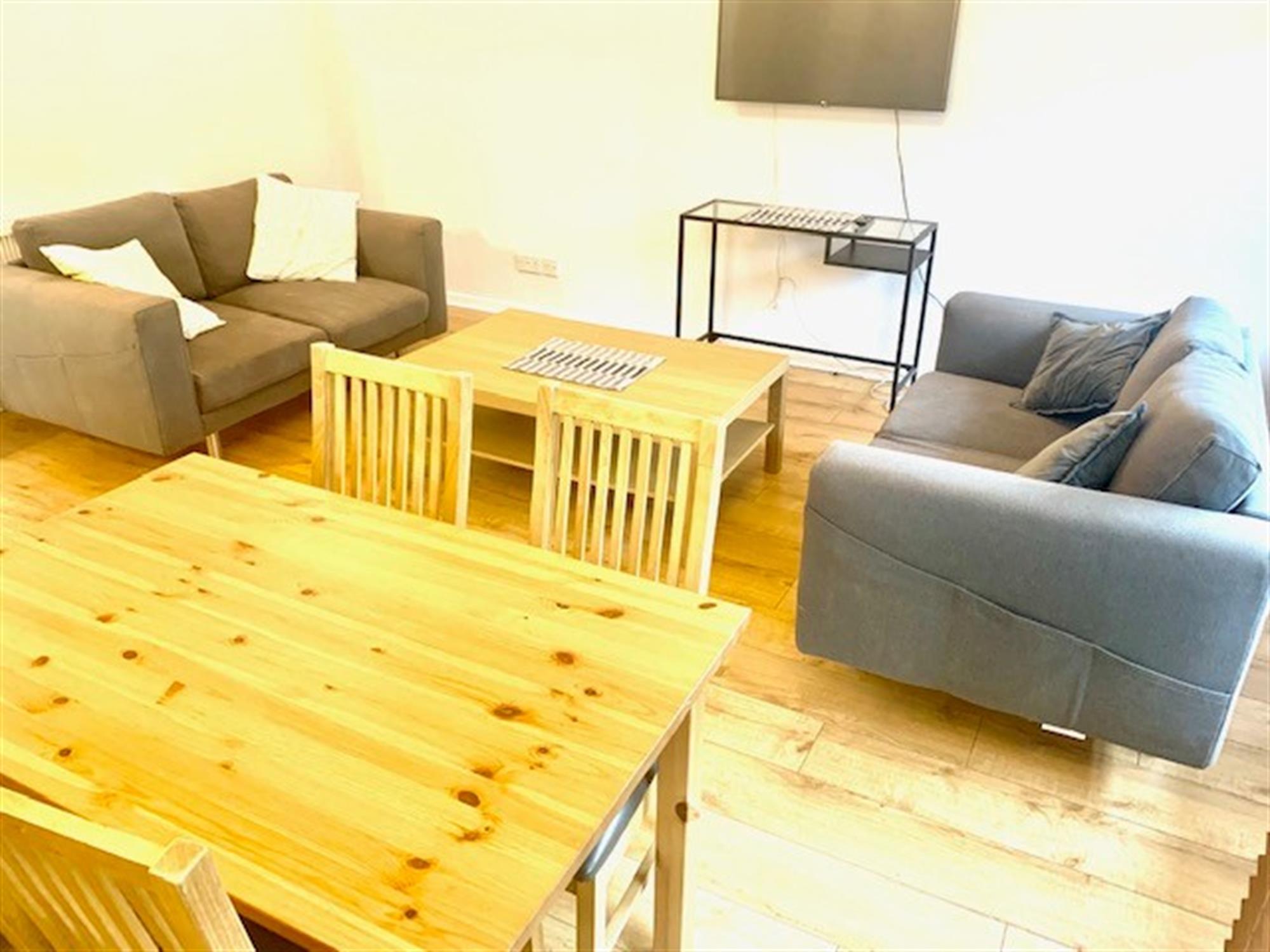 LOUNGE/DINER - Wooden floor. Large window and french doors to front of property. Furniture: Table and chairs, 2 x 2 seater sofas, coffee table, TV and wall unit.