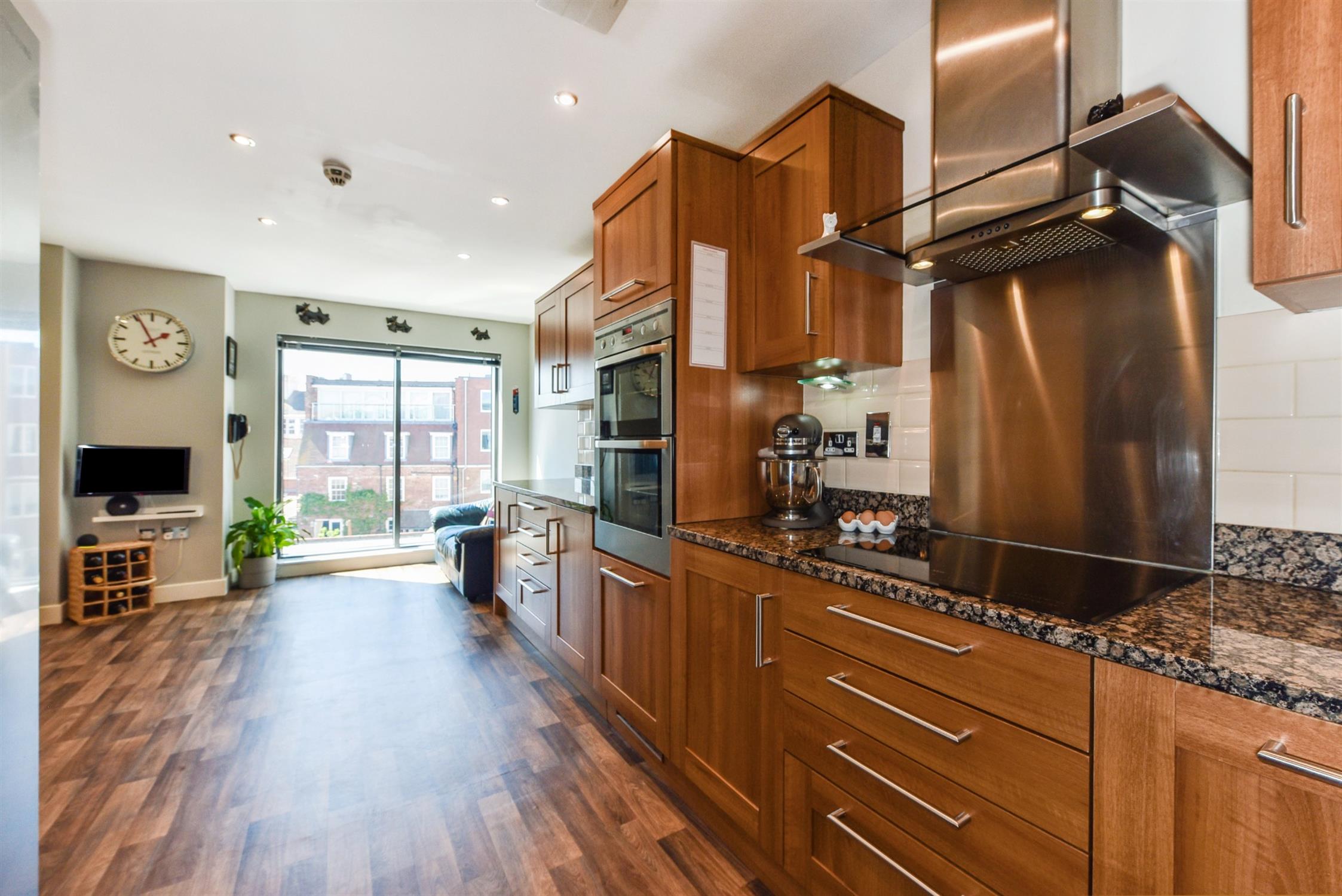 Smooth ceiling with inset spot-lights, extractor fan, double glazed front aspect window and a double glazed picture window. One radiator, a modern fitted kitchen with a range of wall and base mounted units with granite work surfaces over and inset one and a half bowl sink and drainer with a routed draining board. Pantry style cupboard, Integrated double oven, electric hob with extractor hood over, two dishwashers, space for fridge freezer. Dining area with built-in banquette seating with built-in bluetooth speakers.