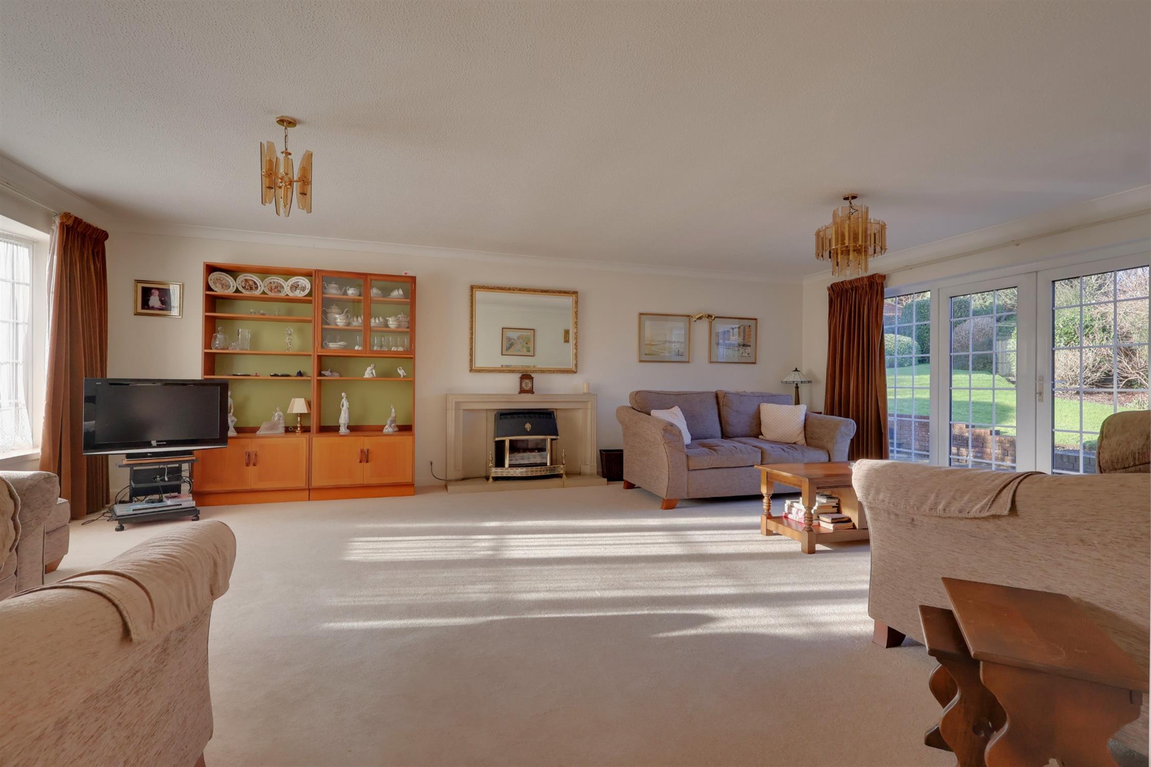 Gas fireplace. Radiator. Double glazed window. French doors to the rear garden.