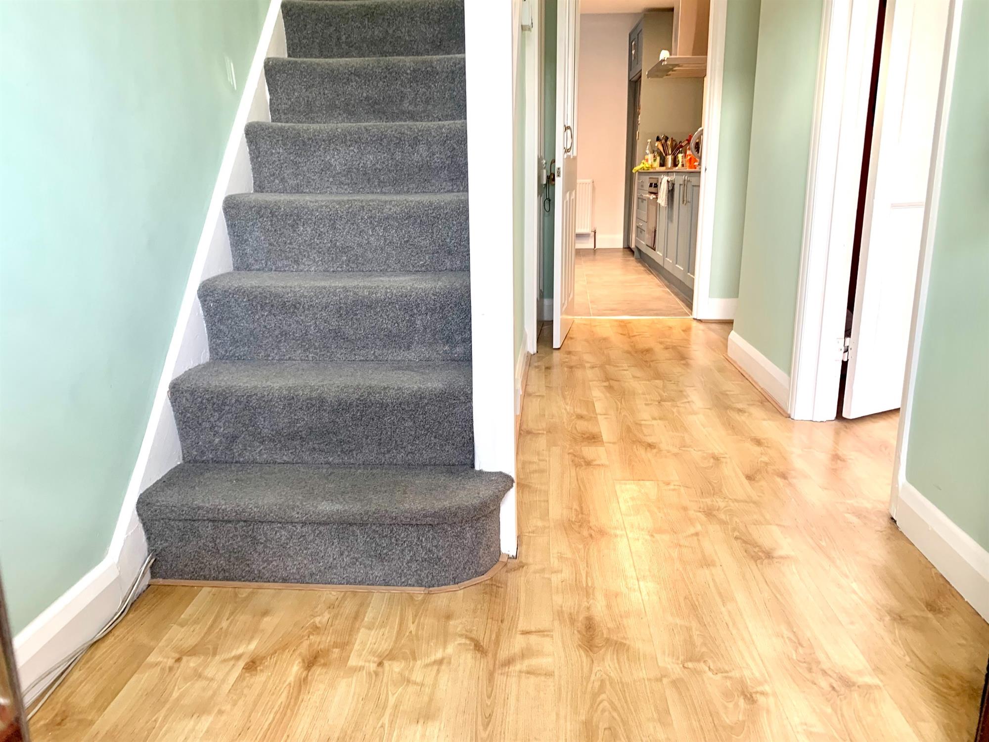 HALLWAY – Laminate flooring leads into the kitchen, lounge/diner, bedroom 4 and stairs to first floor. Handy cupboard stairs.