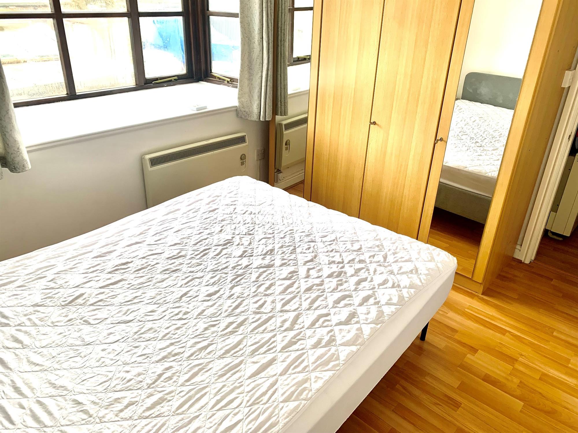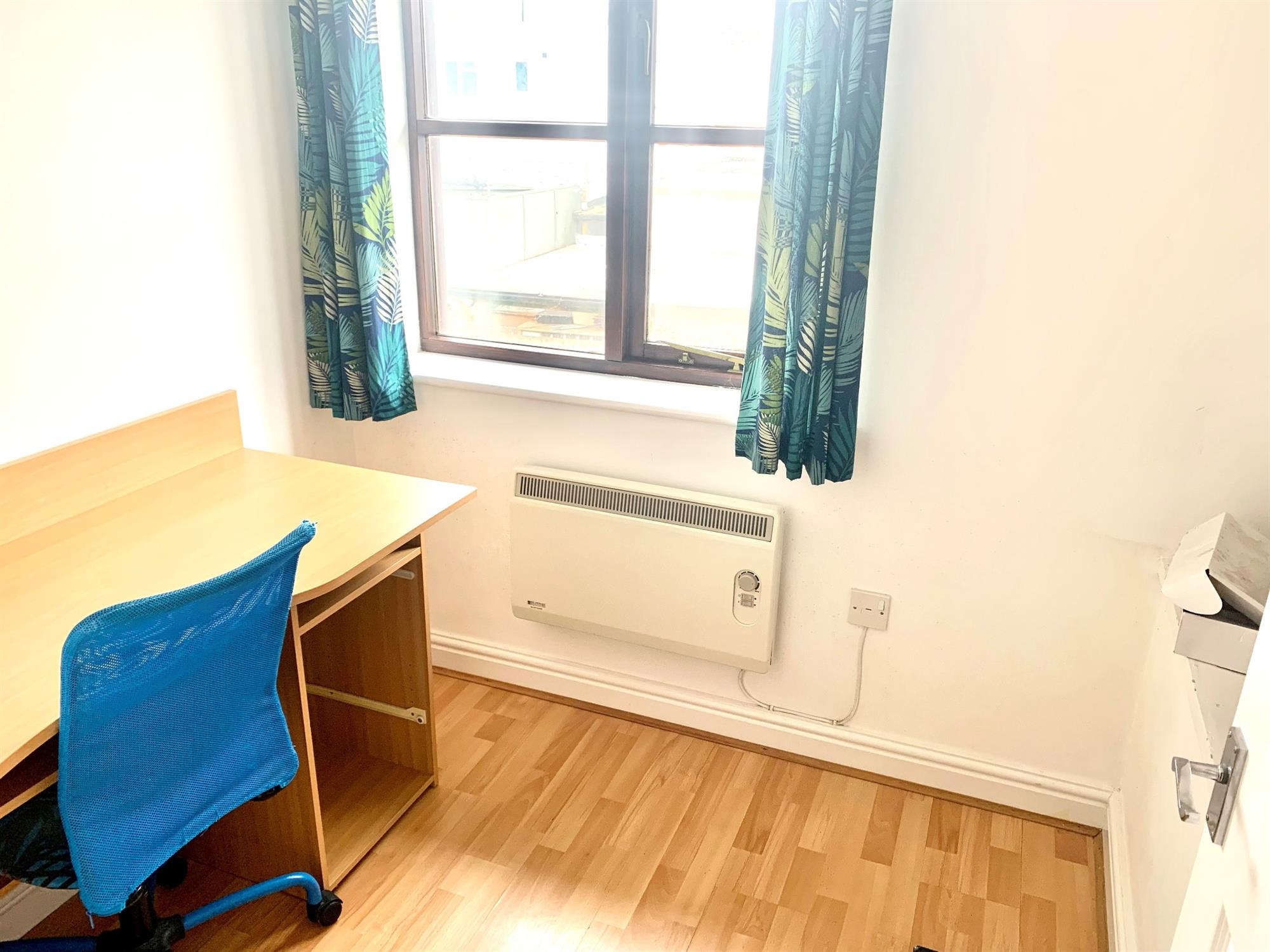 Located to the front of the apartment with laminate flooring and has a desk and chair.