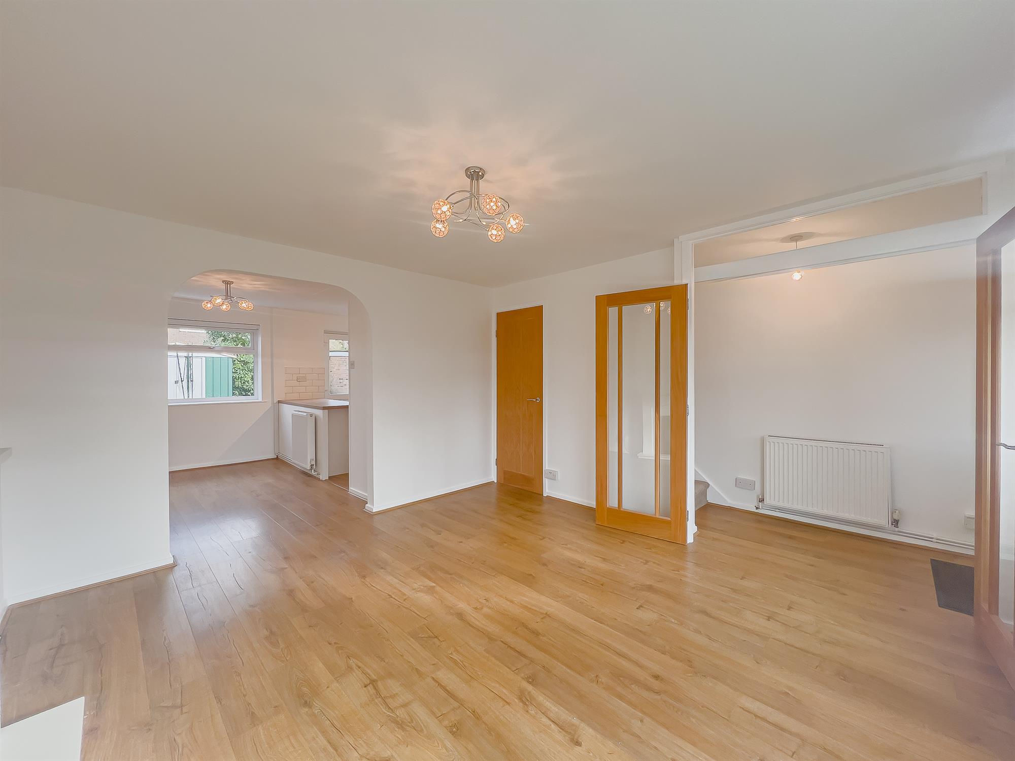 A separate dining room with a large window overlooking the rear garden. Door leading to the kitchen.
