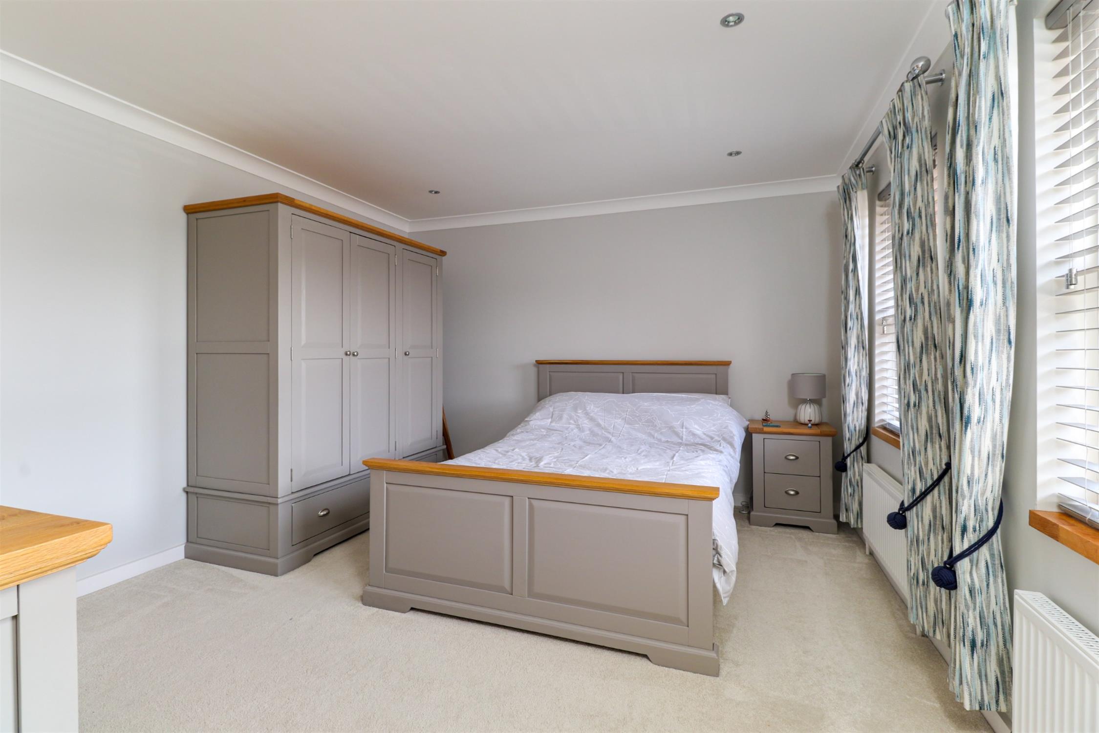 Smooth and coved ceiling with inset spotlights, two double-glazed windows, two radiators, fitted carpet and door into;