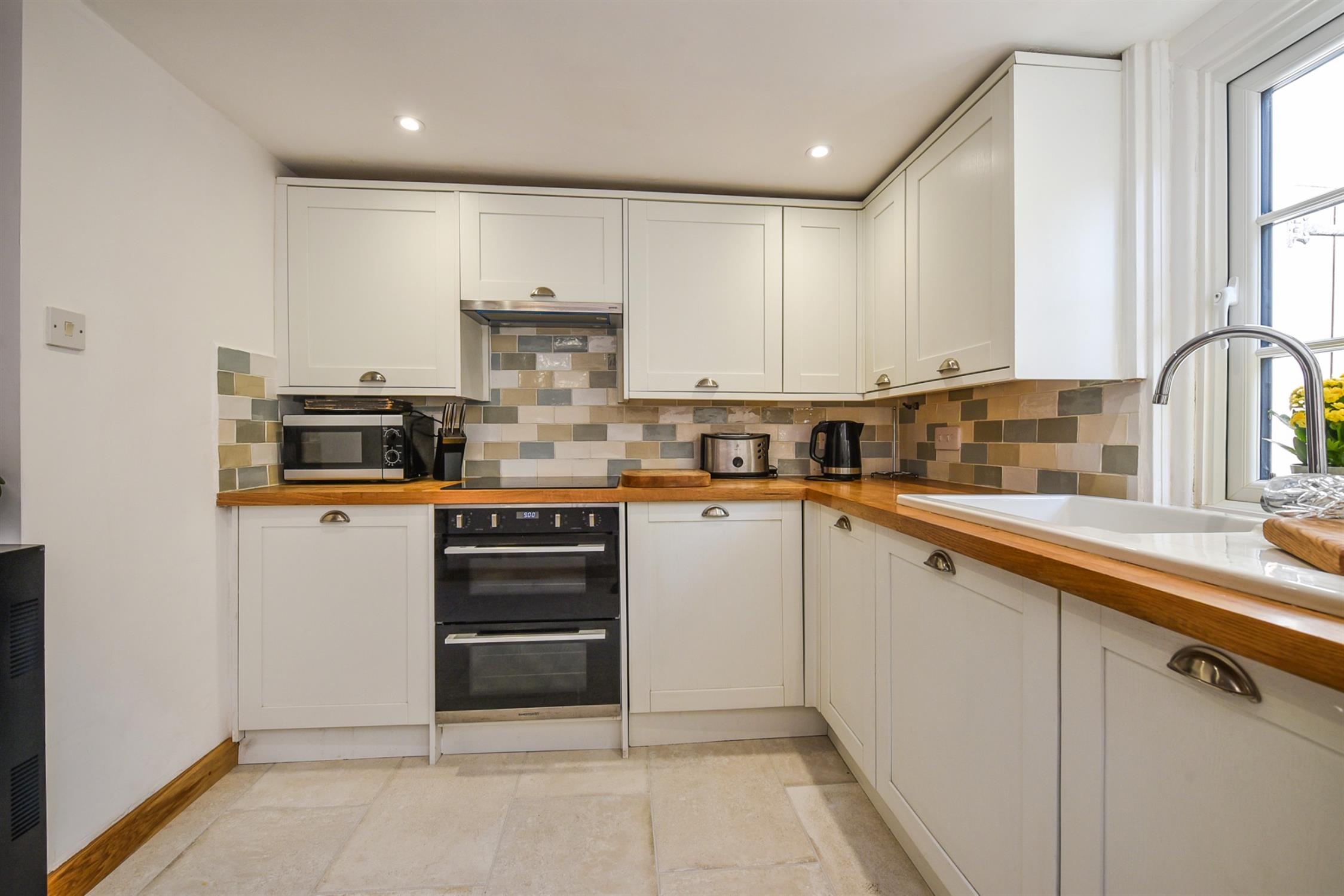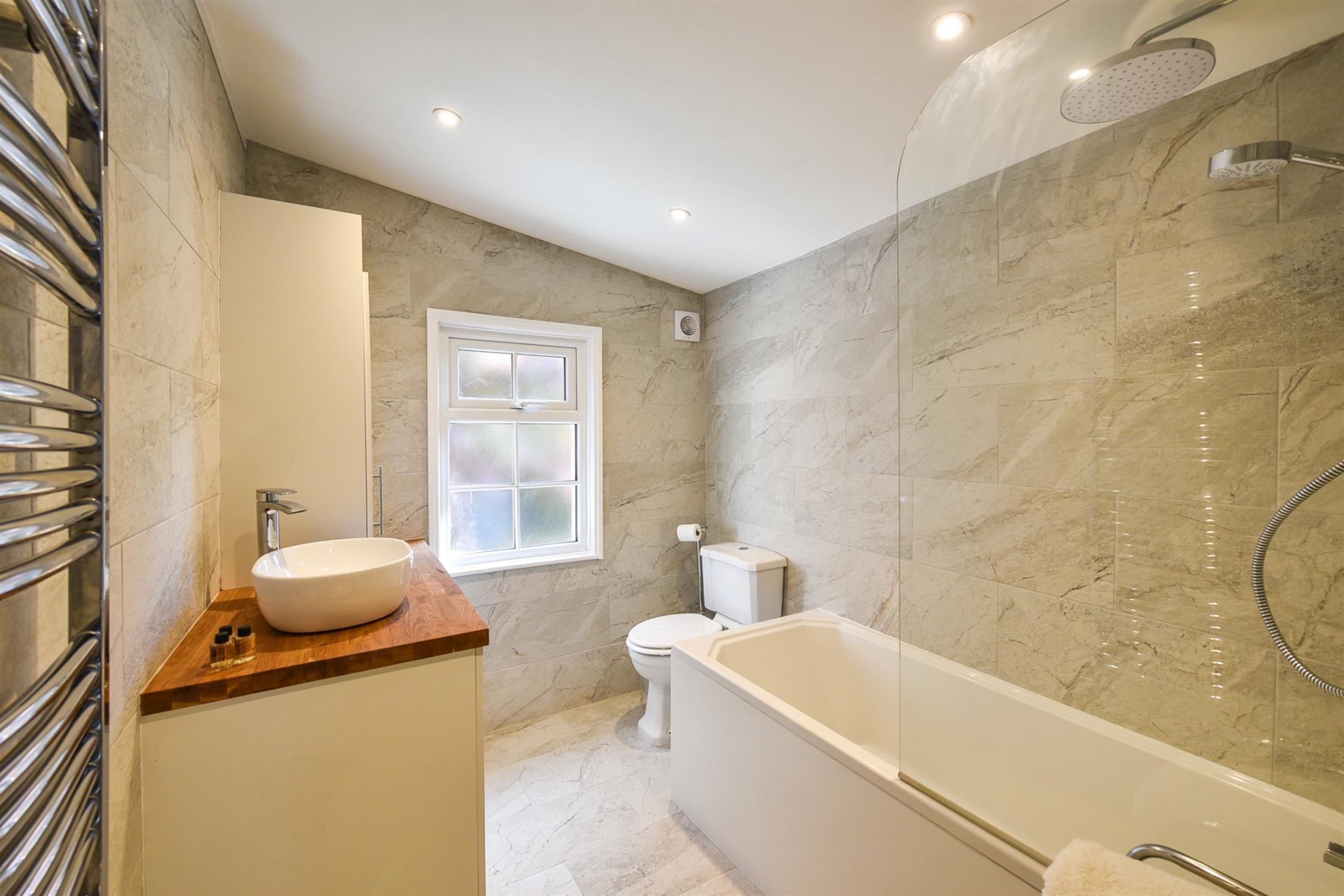 The living room sits towards the front of the property and is fitted with electric fire. The social kitchen/dining room is the heart of the home, with a woodburner and exposed brick fireplace. The kitchen is fitted with a range of eye and low-level shaker style units, solid wood worktop, and intergrated appliances. From here, there is a door leading to the rear garden. Finishing off this floor is a WC fitted with toilet and handbasin.