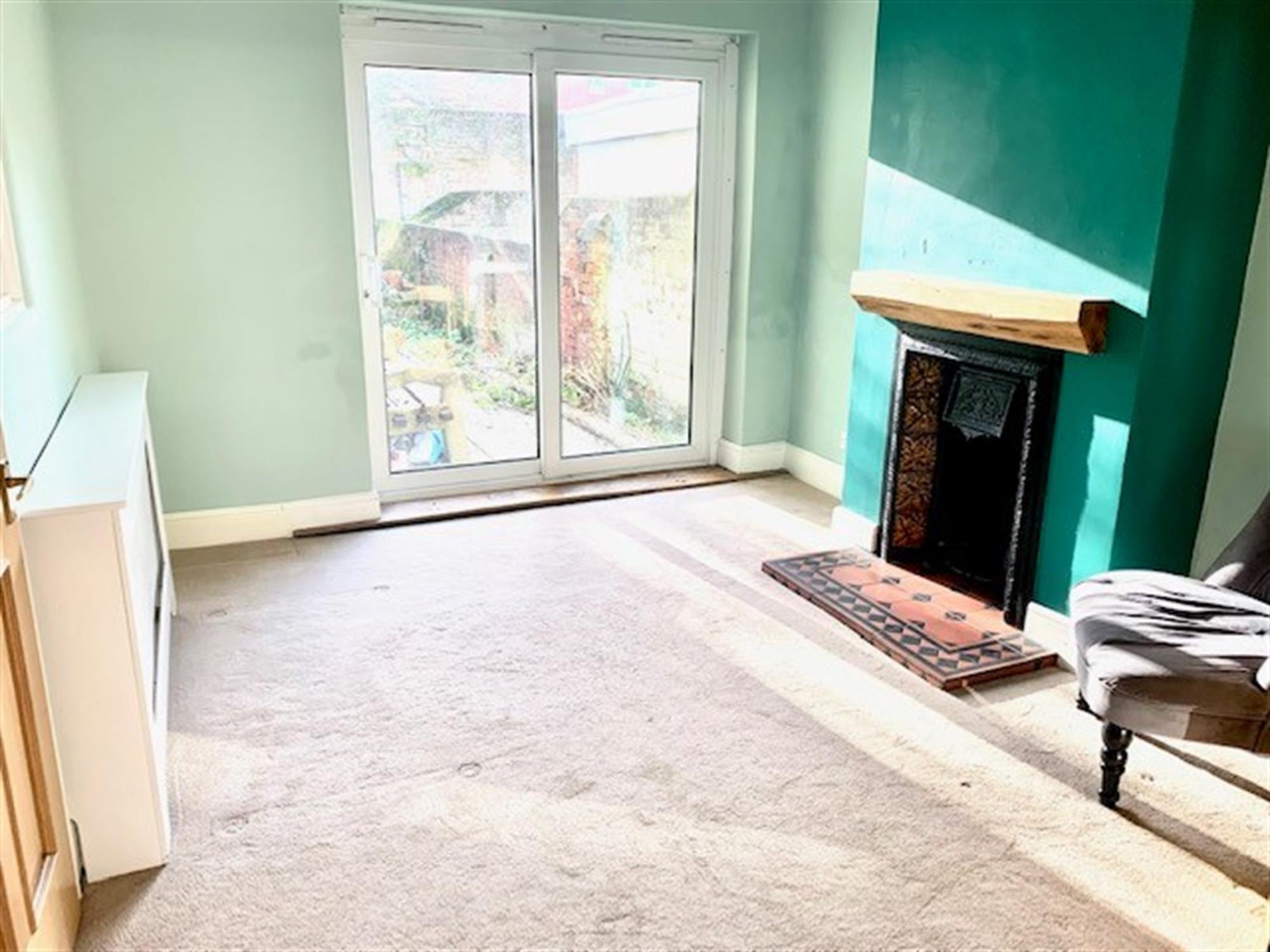 DINING ROOM - 10' 8" (3.26m) x 10' 4" (3.15m) Spacious with patio doors leading to the garden. Ornamnetal fireplace. Carpeted.