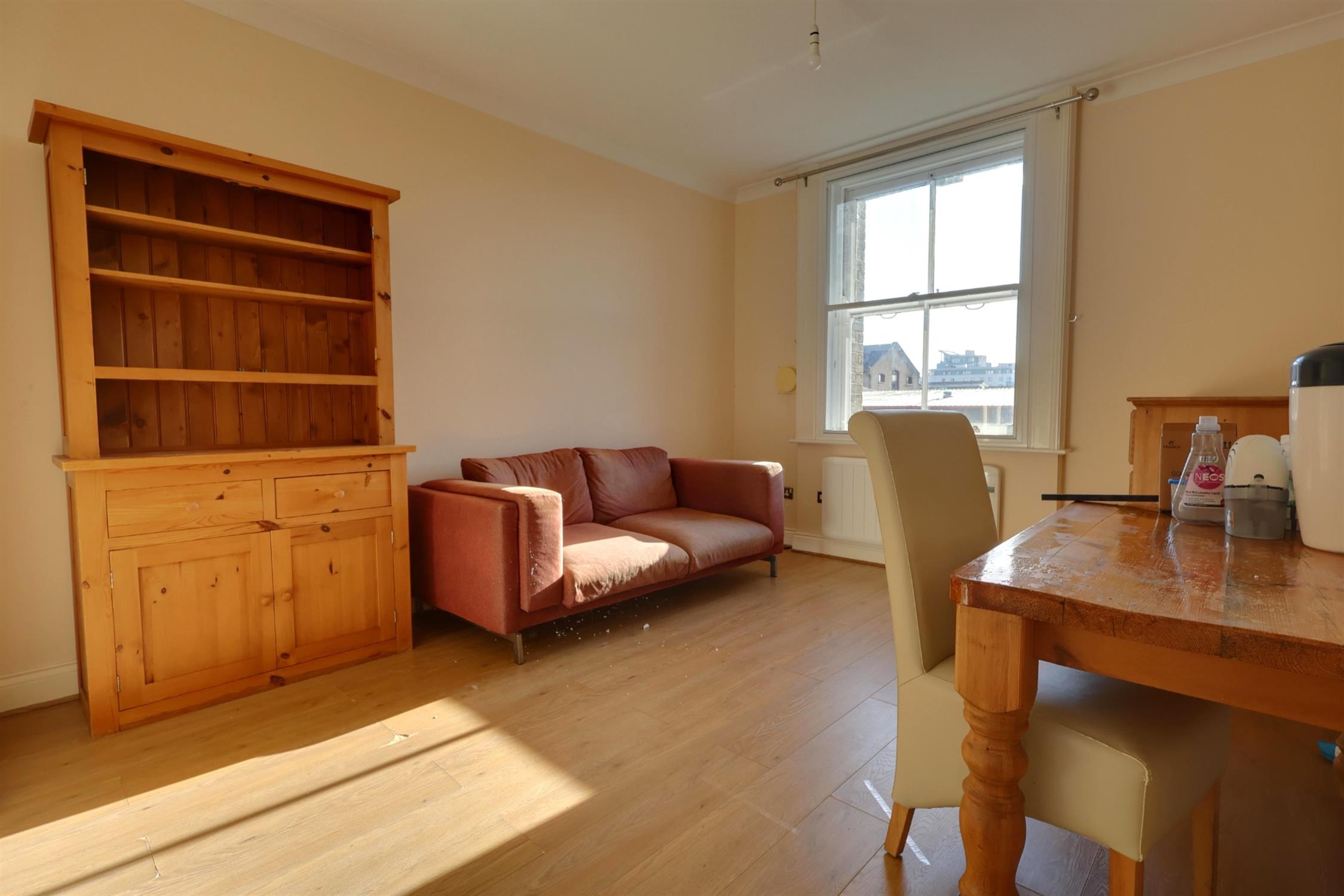 Smooth ceiling, vinyl wood effect flooring, sash window to rear aspect with secondary glazing, electric radiator.