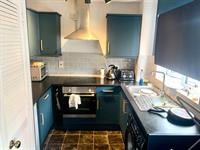 KITCHEN – Open plan to lounge. Window to front. Built in cupboard housing hot water tank. Brand new kitchen with wall and base units. Appliances consist of: electric hob, electric oven, washer/dryer and undercounter fridge with small freezer.