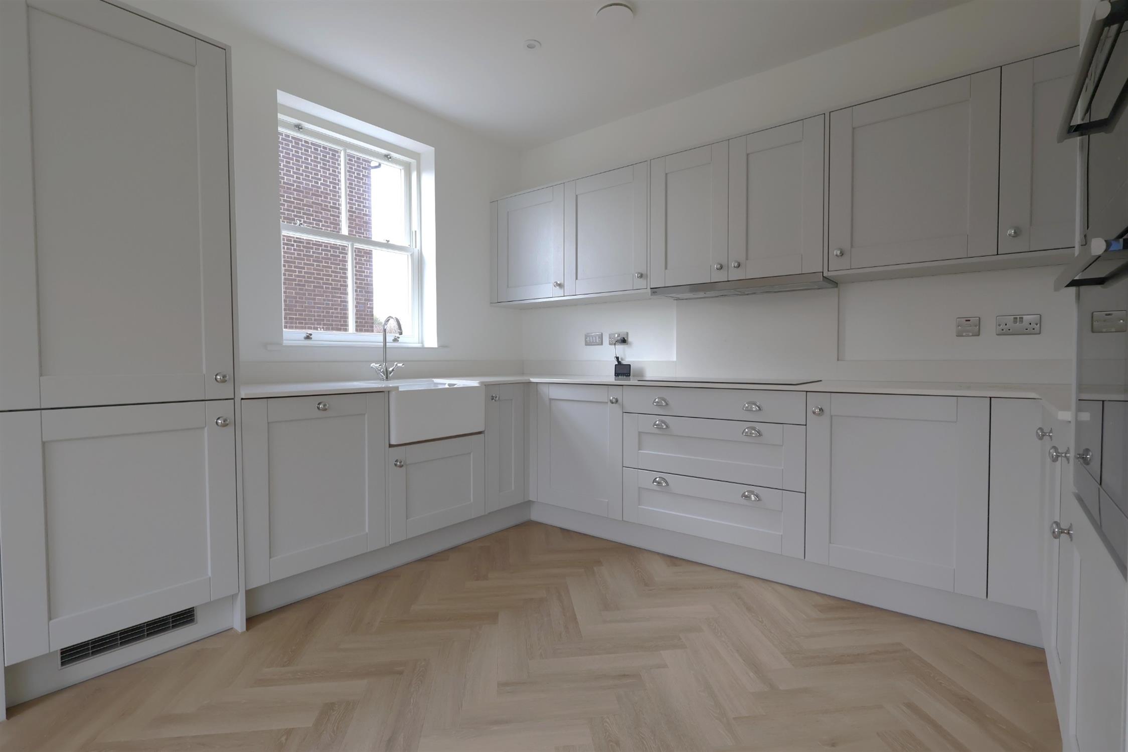 OPEN PLAN KITCHEN/ DINING /FAMILY AREA: Range of fitted wall and base units, incorporating integrated appliances to include electric oven & grill, induction hob, extractor hood, fridge/freezer & dishwasher, butler sink with mixer tap over, side aspect double-glazed vertical sliding window. There is room for comfortable seating, with a rear aspect double-glazed vertical sliding window, and a generous area for a dining table, rear aspect 'French' doors leading to garden. Parquet flooring throughout.