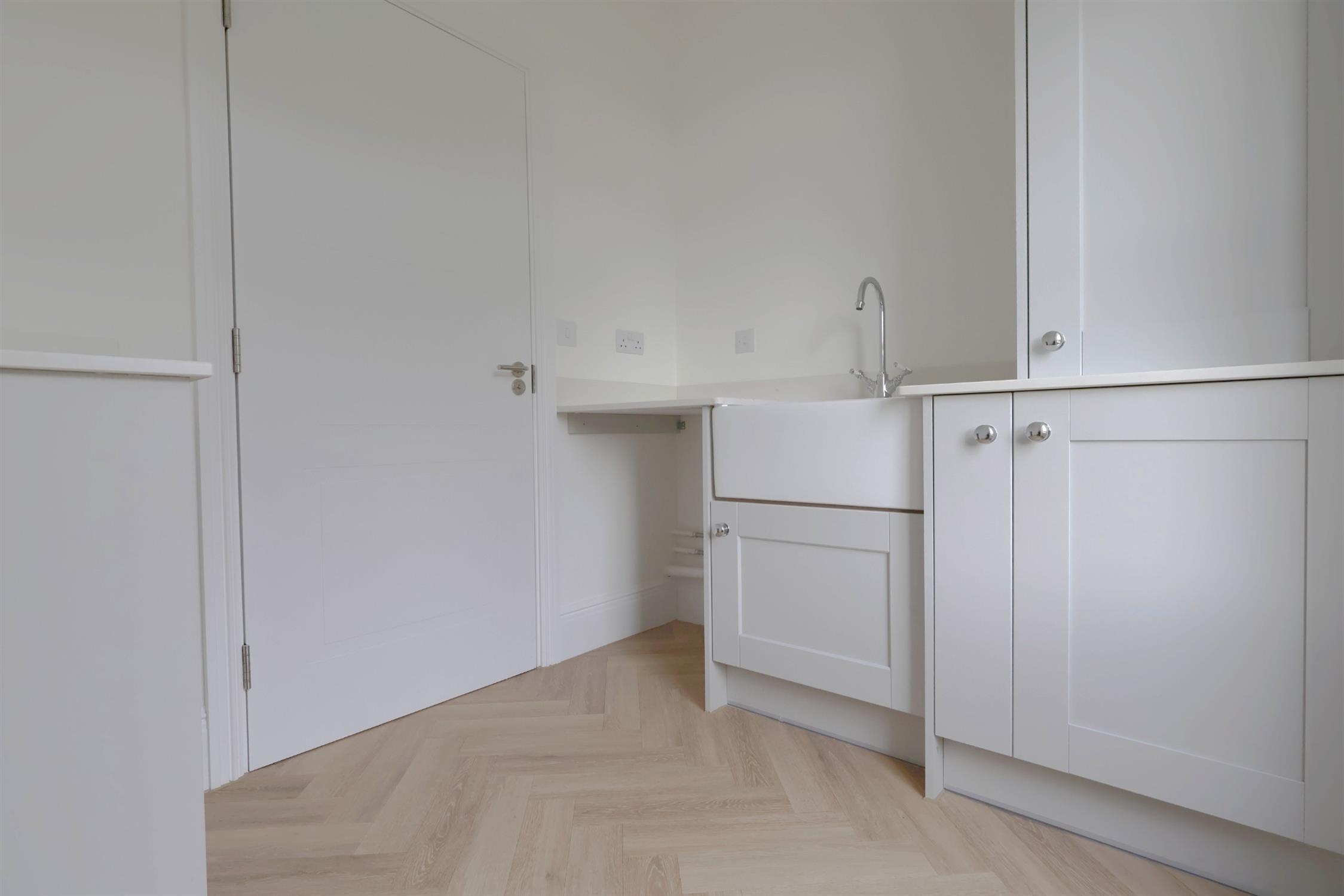 UTILITY ROOM: Range of wall and base units, butler sink with mixer tap over, heat pump, plumbing and space for washing machine & tumble dryer. Double glazed door leading to rear garden. Parquet flooring.