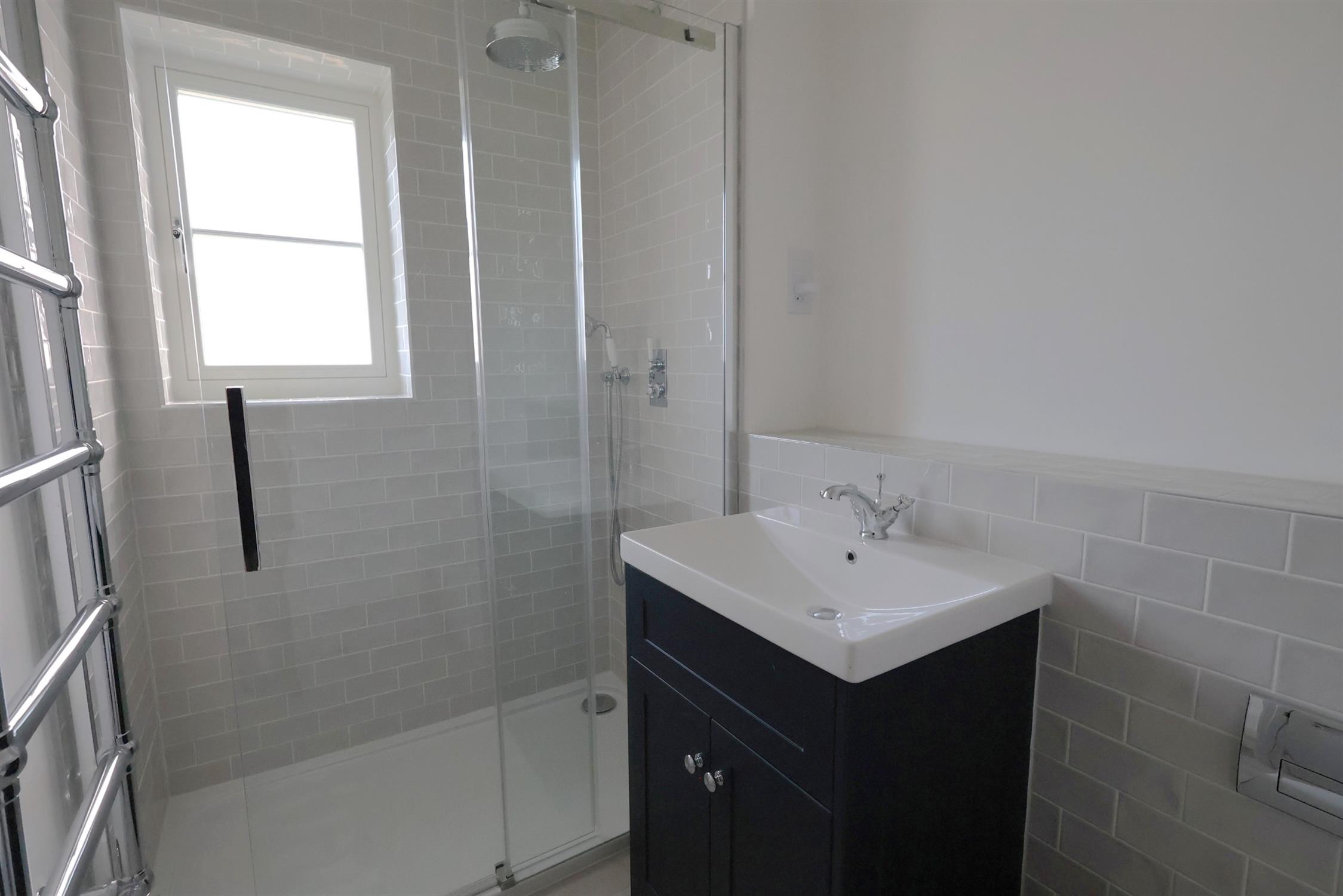 EN-SUITE: Walk in double shower with sliding door, wash hand basin with vanity unit under, W.C., heated towel rail, side aspect double-glazed window.