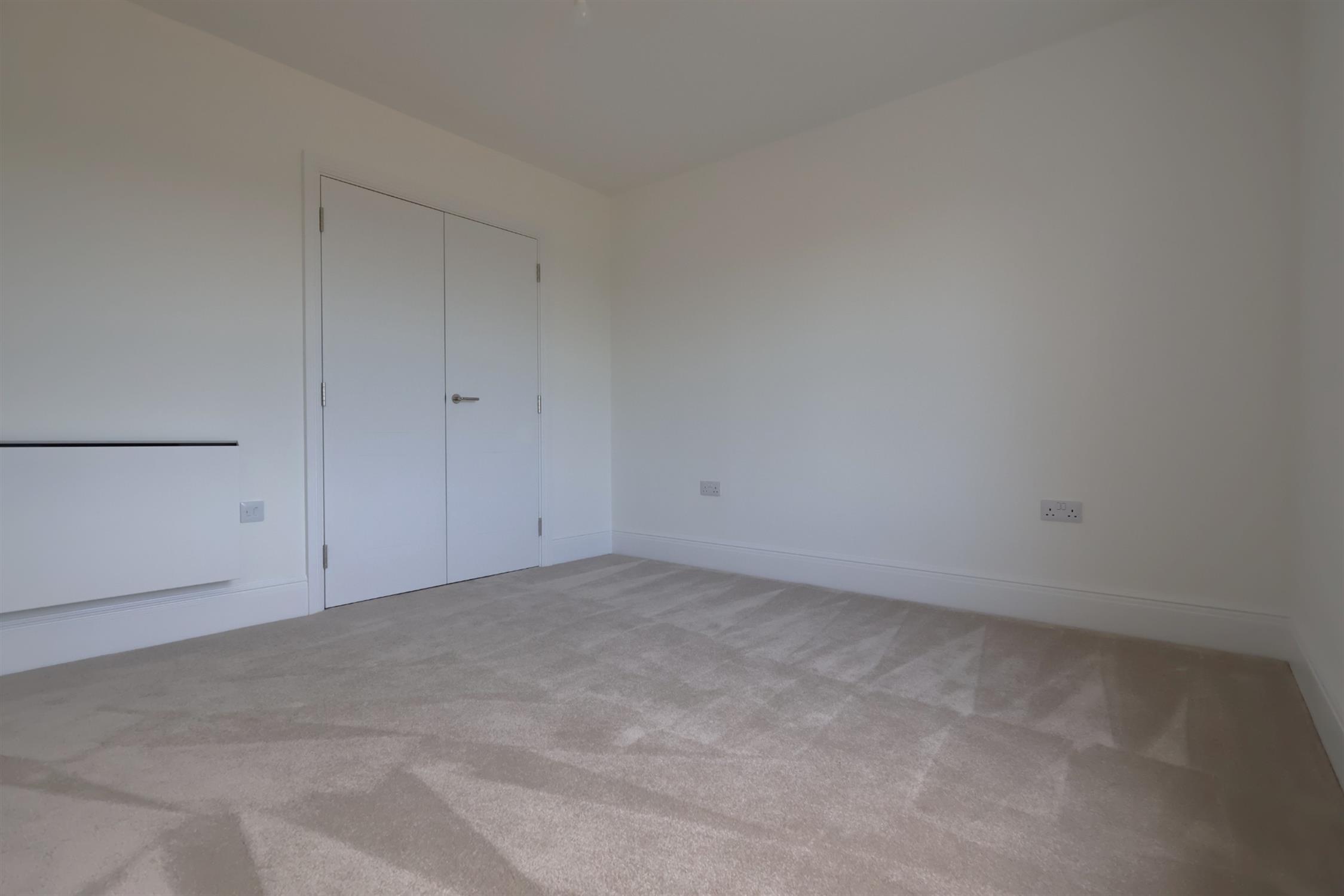 BEDROOM TWO: Good size double room with fitted double wardrobe, front aspect bay window with double-glazed vertical sliders, radiator