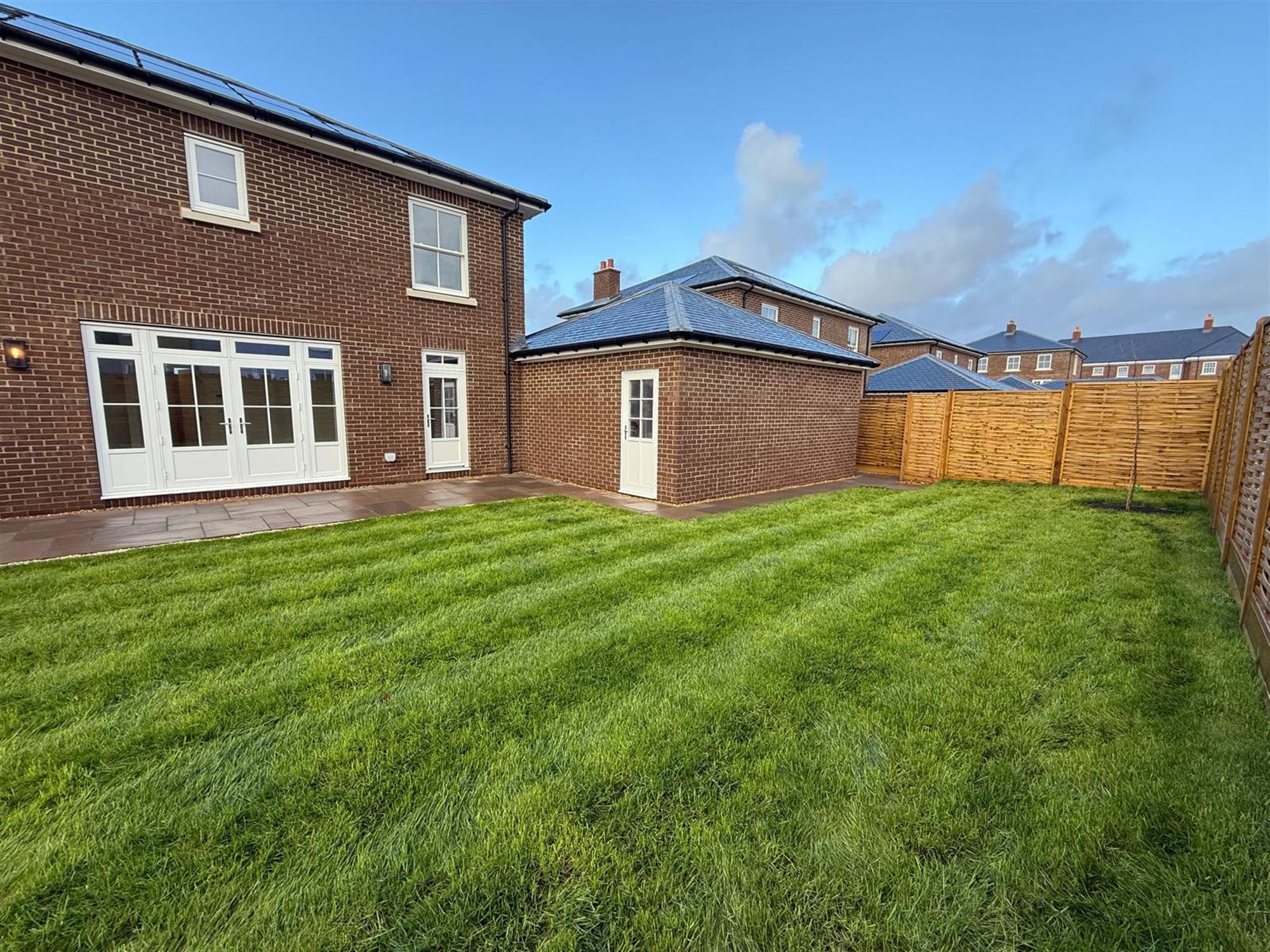 OUTSIDE: To the rear there is an enclosed garden with a patio area and a good size lawned area, and pedestrian access. To the front there is a lawn to either side of the path leading to the front door and shrubs bordering the front. There is a gated driveway, affording parking for around four vehicles, a double garage and an EV charger.