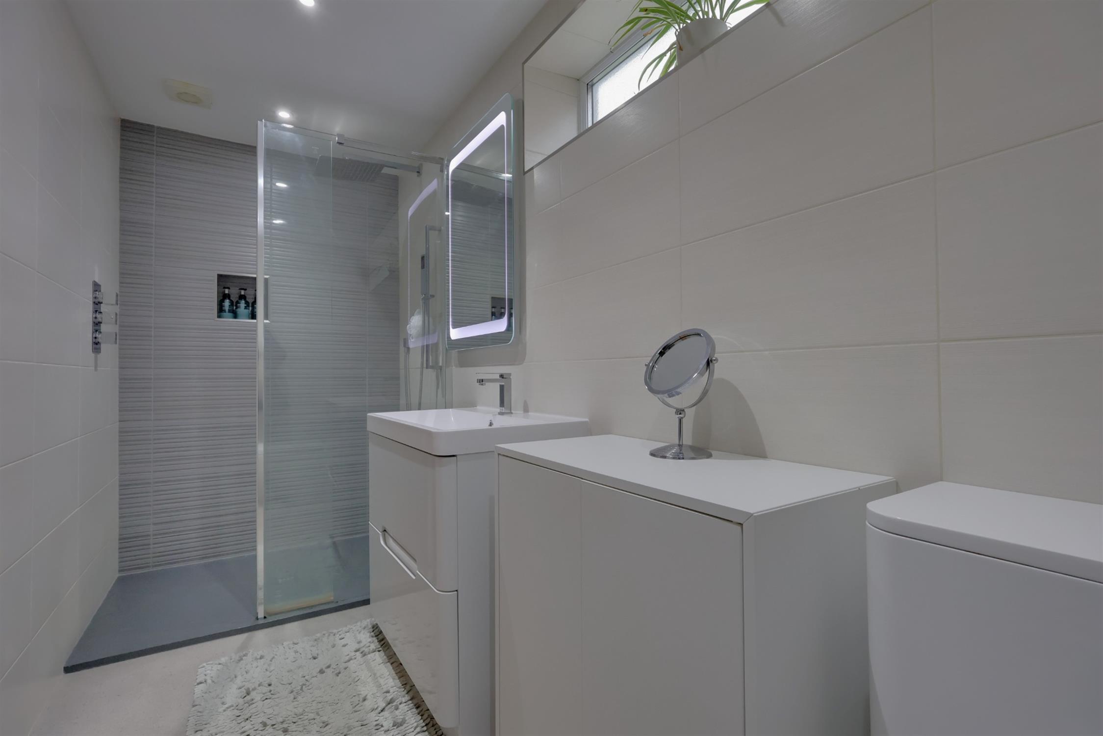 The Italian silver birch porcelain flooring flows from entrance to kitchen offering a feeling of luxury. The zoned underfloor heating in the principal areas, enhances comfort throughout. Integral appliances include an induction Rangemaster double cooker, a separate multifunction oven, both full height fridge and freezer plus dishwasher. With ample Corian kitchen work surfaces and there is also a useful boot room with space for a tumble dryer and washing machine with access to the side. This room connects on to a modern fitted, fully tiled shower room. The large reception hall, with its impressive proportions, leads to additional versatile spaces, including a study, a snug sitting room and direct access to the integral garage. The formal sitting room is light and bright and decorated in a neutral palette featuring a modern log burner and French doors lead directly onto the large decking, offering an alfresco dining area. The first floor is accessed via an impressive Oak and glass staircase leading to the landing which provides access to all the first-floor accommodation. The principal bedroom boasts views of a unique living roof, planted with sedums, adding a seamless view from the roof to the garden beyond. A clever design feature is the en-suite bathroom, which is accessed via hidden sliding doors, fitted into the wardrobe. Three further bedrooms complete the first floor, one of which features its own balcony and a mezzanine-level study or chill-out area. Both bedrooms, two and four benefit from south facing dual-aspect windows. A luxurious, fully fitted tiled family bathroom concludes the accommodation on the first floor.