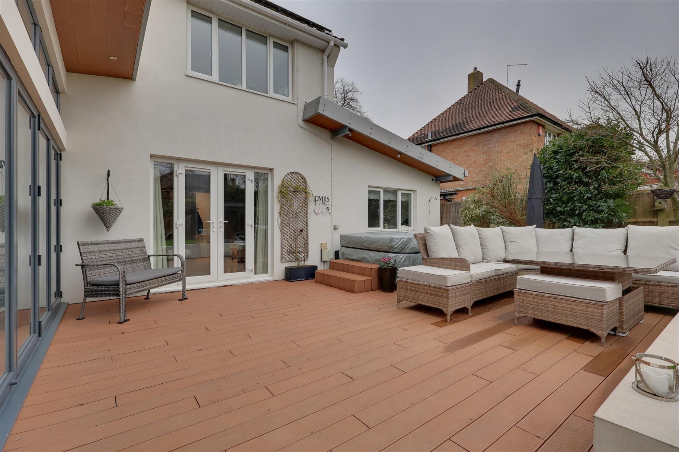 Originally purchased as a three-bedroom home, this stunning mid-century, extended detached house now offers stylish and contemporary accommodation. The current owners have skilfully combined practicality with modern design, creating a seamless flow of rooms throughout the property, making it an ideal home for a modern, growing family. Ground floor highlights include a spacious dual-aspect kitchen/dining/family room, fitted to an extremely high specification, complete with bi-fold doors and a large picture window that floods the space with natural light whilst offering uninterrupted views of the landscaped garden.
